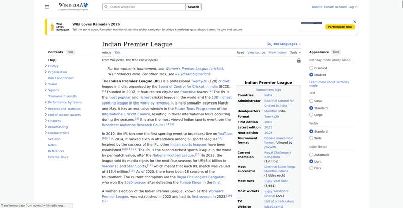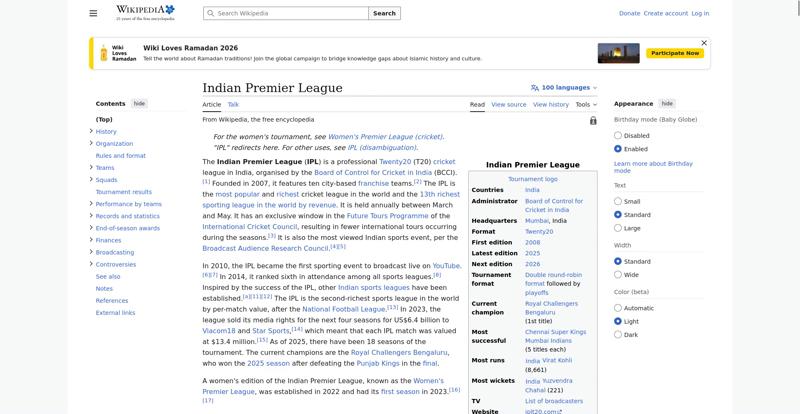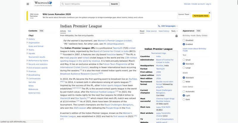 | Offenders: https://en.wikipedia.org/wiki/Indian_Premier_League https://meta.wikimedia.org/w/index.php...a.org/w/index.php |
