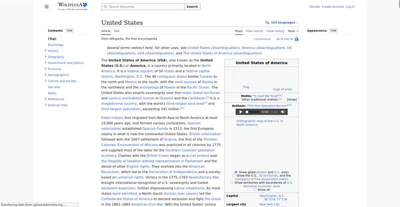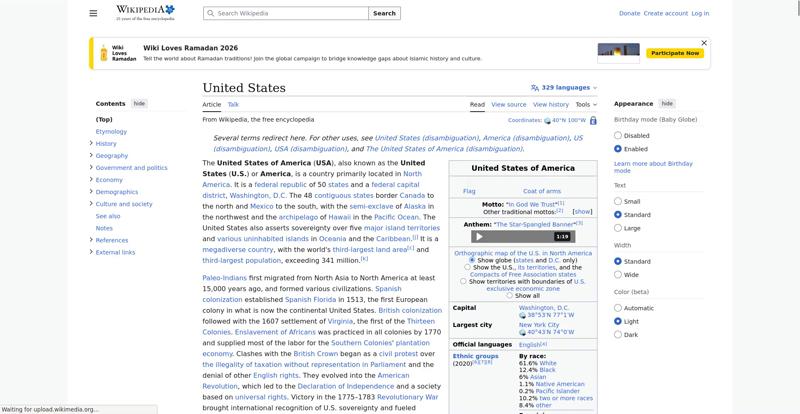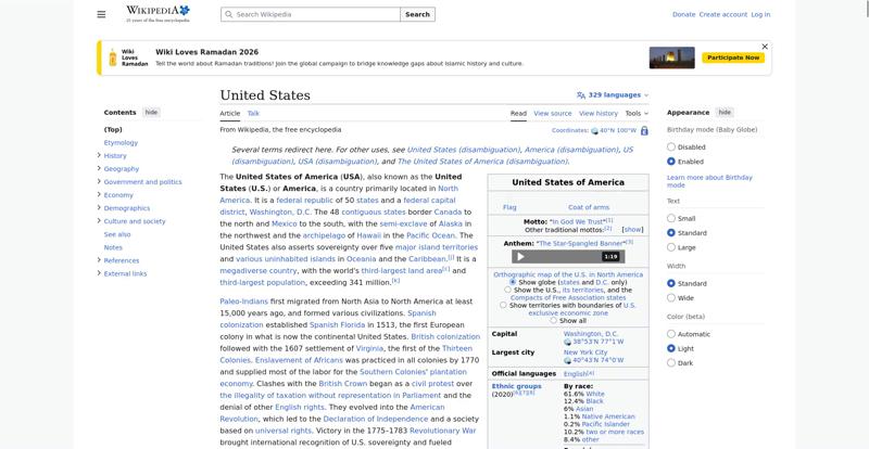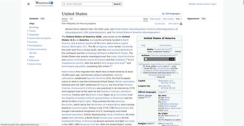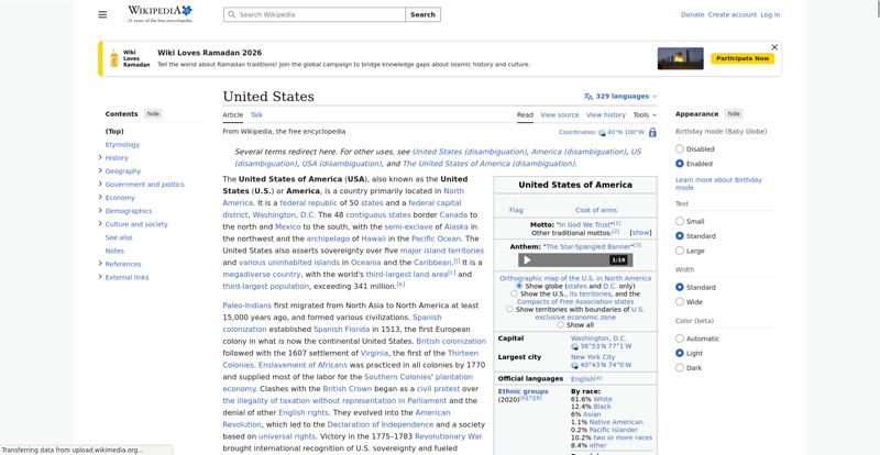 | Offenders: https://upload.wikimedia.org/wikipedia/en/thumb/8/8c/Extended-protection-shackle...n-shackle.svg.png https://upload.wikimedia.org/wikipedia/commons/thumb/0/0a/United_States_%28%2Bov...28zoom%29.svg.png https://upload.wikimedia.org/wikipedia/commons/thumb/f/f2/Indian_Reservations.pn..._Reservations.png https://upload.wikimedia.org/wikipedia/commons/thumb/a/a4/Map_of_USA_with_state_...itory_names_2.png https://upload.wikimedia.org/wikipedia/commons/thumb/5/59/US_state_Legislature_a...r_Control.svg.png https://upload.wikimedia.org/wikipedia/commons/thumb/8/8e/Midtown_Manhattan_Skyl...%28cropped%29.jpg https://upload.wikimedia.org/wikipedia/commons/thumb/2/2a/The_Pentagon%2C_Headqu...28cropped2%29.jpg https://upload.wikimedia.org/wikipedia/commons/thumb/1/10/FBI_Headquarters_-_J._...40035941%29_b.jpg https://upload.wikimedia.org/wikipedia/commons/thumb/3/37/Kat_at_the_Broadview_P...250919_-_0843.jpg https://upload.wikimedia.org/wikipedia/commons/thumb/9/9a/Obverse_of_the_series_..._Reserve_Note.jpg https://upload.wikimedia.org/wikipedia/commons/thumb/7/7a/View_of_Empire_State_B...%28cropped%29.jpg https://upload.wikimedia.org/wikipedia/commons/thumb/2/26/Gaming-Wall-Street_BTS...Prodigium-266.jpg https://upload.wikimedia.org/wikipedia/commons/thumb/4/4f/Extreme_Makeover%2C_Me...n_-_panoramio.jpg https://upload.wikimedia.org/wikipedia/commons/thumb/b/b0/Nouvelle-France_map-en...ce_map-en.svg.png https://upload.wikimedia.org/wikipedia/commons/thumb/f/f9/Declaration_of_Indepen...John_Trumbull.jpg https://upload.wikimedia.org/wikipedia/commons/thumb/9/94/U.S._Territorial_Acqui..._Acquisitions.png https://upload.wikimedia.org/wikipedia/commons/thumb/f/f3/US_SlaveFree1858.gif/3...SlaveFree1858.gif https://upload.wikimedia.org/wikipedia/commons/thumb/2/2d/Trinity_shot_color_%28...x3_cropped%29.jpg https://upload.wikimedia.org/wikipedia/commons/thumb/4/4c/Civil_Rights_March_on_...NARA_-_542010.jpg https://upload.wikimedia.org/wikipedia/commons/thumb/3/35/WTC_smoking_on_9-11.jp...king_on_9-11.jpeg https://upload.wikimedia.org/wikipedia/commons/thumb/5/50/Uspaintedrelief.png/25...paintedrelief.png https://upload.wikimedia.org/wikipedia/commons/thumb/3/31/Canyon_River_Tree_%281...165872763%29.jpeg https://upload.wikimedia.org/wikipedia/commons/thumb/7/77/K%C3%B6ppen_Climate_Ty...e_Types_US_50.png https://upload.wikimedia.org/wikipedia/commons/thumb/d/db/Bald_eagle_about_to_fl...ka_%282016%29.jpg https://upload.wikimedia.org/wikipedia/commons/thumb/0/06/Aerial_view_of_Silicon...ilicon_Valley.jpg https://upload.wikimedia.org/wikipedia/commons/thumb/4/41/A_Man_on_the_Moon%2C_A...%28cropped%29.jpg https://upload.wikimedia.org/wikipedia/commons/thumb/5/55/WMA_button2b.png/20px-WMA_button2b.png https://upload.wikimedia.org/wikipedia/commons/b/b5/Button_resize.png https://upload.wikimedia.org/wikipedia/commons/d/d4/Button_hide.png https://en.wikipedia.org/wiki/Special:CentralAutoLogin/start?useformat=desktop&type=script&usesul3=1 https://meta.wikimedia.org/w/index.php...a.org/w/index.php https://auth.wikimedia.org/metawiki/wiki/Special:CentralAutoLogin/checkLoggedIn...gin/checkLoggedIn https://upload.wikimedia.org/wikipedia/commons/thumb/b/b3/Emigrants_%28i.e._immi...Island_-.webm.jpg https://upload.wikimedia.org/wikipedia/commons/c/c1/Wiki_Loves_Ramadan_Logo_Black_banner.svg https://upload.wikimedia.org/wikipedia/commons/1/1f/%D8%B5%D9%88%D9%85%D8%B9%D8%...8%D8%A7%D8%B7.jpg |