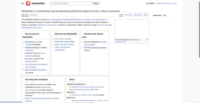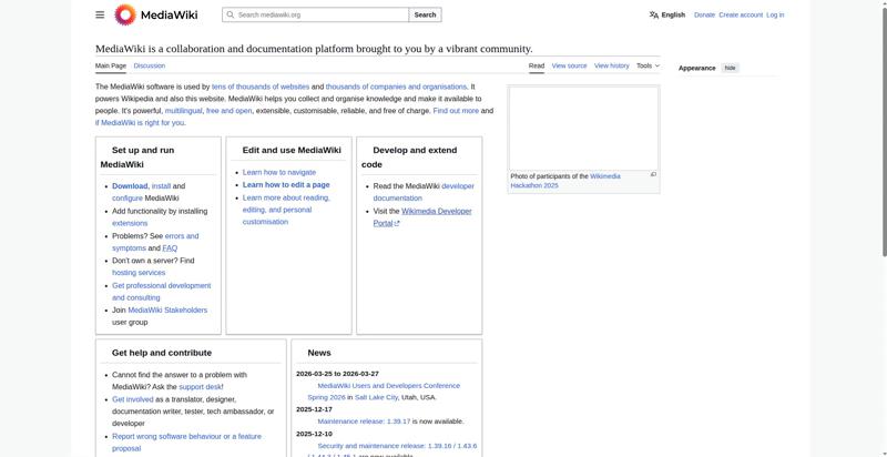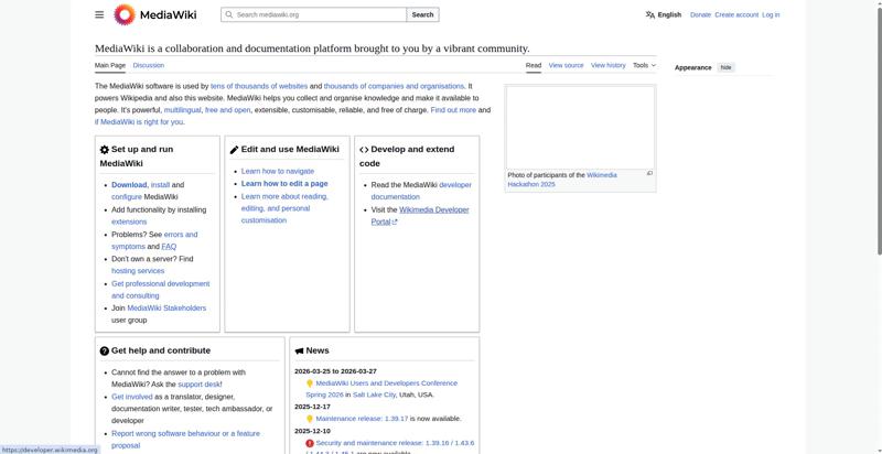 | <img src="//upload.wikimedia.org/wikipedia/commons/thumb/e/e4/Wikimedia_Hackathon_2025_Group_photo_from_drone.jpg/330px-Wikimedia_Hackathon_2025_Group_photo_from_drone.jpg" decoding="async" width="320" height="180" class="mw-file-element" srcset="//upload.wikimedia.org/wikipedia/commons/thumb/e/e4/Wikimedia_Hackathon_2025_Group_photo_from_drone.jpg/500px-Wikimedia_Hackathon_2025_Group_photo_from_drone.jpg 1.5x, //upload.wikimedia.org/wikipedia/commons/thumb/e/e4/Wikimedia_Hackathon_2025_Group_photo_from_drone.jpg/960px-Wikimedia_Hackathon_2025_Group_photo_from_drone.jpg 2x" data-file-width="3775" data-file-height="2119"> | |||||