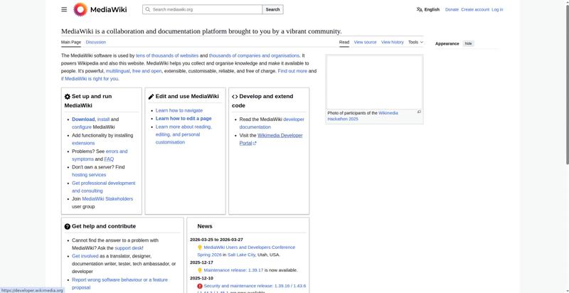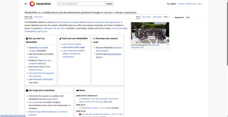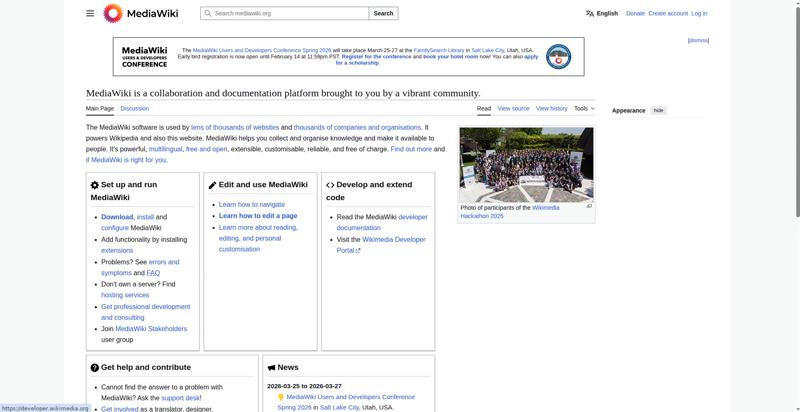 | <img src="//upload.wikimedia.org/wikipedia/commons/thumb/e/e4/Wikimedia_Hackathon_2025_Group_photo_from_drone.jpg/330px-Wikimedia_Hackathon_2025_Group_photo_from_drone.jpg" decoding="async" width="320" height="180" class="mw-file-element" srcset="//upload.wikimedia.org/wikipedia/commons/thumb/e/e4/Wikimedia_Hackathon_2025_Group_photo_from_drone.jpg/500px-Wikimedia_Hackathon_2025_Group_photo_from_drone.jpg 1.5x, //upload.wikimedia.org/wikipedia/commons/thumb/e/e4/Wikimedia_Hackathon_2025_Group_photo_from_drone.jpg/960px-Wikimedia_Hackathon_2025_Group_photo_from_drone.jpg 2x" data-file-width="3775" data-file-height="2119"> | |||||