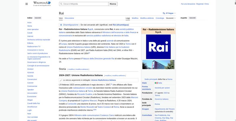 | Offenders: https://upload.wikimedia.org/wikipedia/commons/thumb/b/bc/Nota_disambigua.svg/20...isambigua.svg.png https://upload.wikimedia.org/wikipedia/commons/thumb/8/88/Logo_of_RAI_%282016%29...282016%29.svg.png https://upload.wikimedia.org/wikipedia/commons/thumb/5/5a/Rai_Roma_viale_mazzini...viale_mazzini.JPG https://upload.wikimedia.org/wikipedia/commons/thumb/0/03/Flag_of_Italy.svg/20px..._of_Italy.svg.png https://upload.wikimedia.org/wikipedia/commons/thumb/8/87/Magnifying_glass_icon_...icon_mgx2.svg.png https://upload.wikimedia.org/wikipedia/it/thumb/b/bd/Vittorio_Veltroni%2C_Lidia_...osio_nel_1939.jpg https://upload.wikimedia.org/wikipedia/commons/thumb/c/cc/Paolo_Monti_-_Servizio..._BEIC_6364368.jpg https://upload.wikimedia.org/wikipedia/commons/thumb/6/6c/Rai_Roma_via_Teulada.J...a_via_Teulada.JPG https://upload.wikimedia.org/wikipedia/it/thumb/a/a5/DSE_RAI_-_Corso_BASIC_-_198...BASIC_-_1986.jpeg https://upload.wikimedia.org/wikipedia/it/thumb/7/7a/Sanremo_1985_-_Antonella_Ru...lla_Ruggiero.jpeg https://upload.wikimedia.org/wikipedia/commons/thumb/f/f8/Saxa_rubra.jpg/250px-Saxa_rubra.jpg https://upload.wikimedia.org/wikipedia/commons/thumb/4/4e/RAI_sede_Salaria.jpeg/...sede_Salaria.jpeg https://upload.wikimedia.org/wikipedia/commons/thumb/f/fa/Rai_1_-_Logo_2016.svg/...Logo_2016.svg.png https://upload.wikimedia.org/wikipedia/commons/thumb/f/fb/Yes_check.svg/20px-Yes_check.svg.png https://upload.wikimedia.org/wikipedia/commons/thumb/a/a2/X_mark.svg/20px-X_mark.svg.png https://upload.wikimedia.org/wikipedia/commons/thumb/9/99/Rai_2_-_Logo_2016.svg/...Logo_2016.svg.png https://upload.wikimedia.org/wikipedia/commons/thumb/4/47/Rai_3_-_Logo_2016.svg/...Logo_2016.svg.png https://upload.wikimedia.org/wikipedia/commons/thumb/4/4d/Rai_4_-_Logo_2016.svg/...Logo_2016.svg.png https://upload.wikimedia.org/wikipedia/commons/thumb/f/f8/Rai_5_-_Logo_2017.svg/...Logo_2017.svg.png https://upload.wikimedia.org/wikipedia/commons/thumb/6/61/Rai_Movie_-_Logo_2017....Logo_2017.svg.png https://upload.wikimedia.org/wikipedia/commons/thumb/a/ad/Rai_Premium_-_Logo_201...Logo_2017.svg.png https://upload.wikimedia.org/wikipedia/commons/thumb/c/c1/Rai_Gulp_-_Logo_2017.s...Logo_2017.svg.png https://upload.wikimedia.org/wikipedia/commons/thumb/0/01/Rai_Yoyo_-_Logo_2017.s...Logo_2017.svg.png https://upload.wikimedia.org/wikipedia/commons/thumb/a/a1/Rai_News_24_logo_%2820...282022%29.svg.png https://upload.wikimedia.org/wikipedia/commons/thumb/f/f8/Rai_Storia_-_Logo_2017...Logo_2017.svg.png https://upload.wikimedia.org/wikipedia/commons/thumb/b/b3/Rai_Sport_-_Logo_2022....Logo_2022.svg.png https://upload.wikimedia.org/wikipedia/commons/thumb/1/11/Rai_Scuola_-_Logo_2017...Logo_2017.svg.png https://upload.wikimedia.org/wikipedia/commons/thumb/f/fd/Rai_Radio_2_-_Logo_201...Logo_2017.svg.png https://upload.wikimedia.org/wikipedia/commons/thumb/b/bc/Rai_4K_-_Logo_2017.svg...Logo_2017.svg.png https://upload.wikimedia.org/wikipedia/commons/thumb/8/8a/Rai_Italia_-_Logo_2017...Logo_2017.svg.png https://upload.wikimedia.org/wikipedia/commons/thumb/c/cf/Rai_World_Premium_-_Lo...Logo_2017.svg.png https://upload.wikimedia.org/wikipedia/commons/thumb/3/3a/Rai_3_Abruzzo_-_Logo_2...o_-_Logo_2016.png https://upload.wikimedia.org/wikipedia/commons/thumb/6/6e/Rai_3_Alto_Adige_-_Log...e_-_Logo_2016.png https://upload.wikimedia.org/wikipedia/commons/thumb/a/ab/Rai_Alto_Adige_-_Logo_...Logo_2018.svg.png https://upload.wikimedia.org/wikipedia/commons/thumb/6/64/Rai_3_Basilicata_-_Log...a_-_Logo_2016.png https://upload.wikimedia.org/wikipedia/commons/thumb/3/31/Rai_3_Calabria_-_Logo_...a_-_Logo_2016.png https://upload.wikimedia.org/wikipedia/commons/thumb/f/fc/Rai_3_Campania_-_Logo_...a_-_Logo_2016.png https://upload.wikimedia.org/wikipedia/commons/thumb/4/47/Rai_3_Emilia_Romagna_-...a_-_Logo_2016.png https://upload.wikimedia.org/wikipedia/commons/thumb/5/51/Rai_3_Friuli_Venezia_G...a_-_Logo_2016.png https://upload.wikimedia.org/wikipedia/commons/thumb/c/c4/Rai_3_Bis_FJK_Logo_201...Logo_2016.svg.png https://upload.wikimedia.org/wikipedia/commons/thumb/7/7a/Rai_3_Lazio_-_Logo_201...o_-_Logo_2016.png https://upload.wikimedia.org/wikipedia/commons/thumb/f/f2/Rai_3_Liguria_-_Logo_2...a_-_Logo_2016.png https://upload.wikimedia.org/wikipedia/commons/thumb/c/c0/Rai_3_Lombardia_-_Logo...a_-_Logo_2016.png https://upload.wikimedia.org/wikipedia/commons/thumb/8/88/Rai_3_Marche_-_Logo_20...e_-_Logo_2016.png https://upload.wikimedia.org/wikipedia/commons/thumb/8/87/Rai_3_Molise_-_Logo_20...e_-_Logo_2016.png https://upload.wikimedia.org/wikipedia/commons/thumb/8/8e/Rai_3_Piemonte_-_Logo_...e_-_Logo_2016.png https://upload.wikimedia.org/wikipedia/commons/thumb/9/9b/Rai_3_Puglia_-_Logo_20...a_-_Logo_2016.png https://upload.wikimedia.org/wikipedia/commons/thumb/2/2e/Rai_3_Sardegna_-_Logo_...a_-_Logo_2016.png https://upload.wikimedia.org/wikipedia/commons/thumb/3/3f/Rai_3_Toscana_-_Logo_2...a_-_Logo_2016.png https://upload.wikimedia.org/wikipedia/commons/thumb/5/5e/Rai_Radio_Kids_logo.sv...Kids_logo.svg.png https://upload.wikimedia.org/wikipedia/commons/thumb/d/d6/Rai_Teche_-_Logo_2018....Logo_2018.svg.png https://upload.wikimedia.org/wikipedia/commons/thumb/9/9a/RAI_PAlermo.JPG/250px-RAI_PAlermo.JPG https://upload.wikimedia.org/wikipedia/commons/thumb/b/ba/Flag_of_Germany.svg/20...f_Germany.svg.png https://upload.wikimedia.org/wikipedia/commons/thumb/9/92/Flag_of_Belgium_%28civ...8civil%29.svg.png https://en.wikipedia.org/w/index.php...a.org/w/index.php https://en.wikipedia.org/w/index.php...a.org/w/index.php https://it.wikipedia.org/wiki/Special:CentralAutoLogin/start?useformat=desktop&type=script&usesul3=1 https://auth.wikimedia.org/metawiki/wiki/Special:CentralAutoLogin/checkLoggedIn...gin/checkLoggedIn |