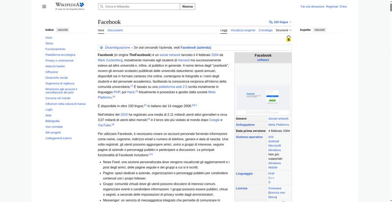 | <img alt="Schermata di esempio" resource="//it.wikipedia.org/wiki/File:Screen_of_Facebook_(2).PNG" src="//upload.wikimedia.org/wikipedia/commons/thumb/6/69/Screen_of_Facebook_%282%29.PNG/330px-Screen_of_Facebook_%282%29.PNG" decoding="async" data-file-width="1600" data-file-height="859" data-file-type="bitmap" height="140" width="260" srcset="//upload.wikimedia.org/wikipedia/commons/thumb/6/69/Screen_of_Facebook_%282%29.PNG/500px-Screen_of_Facebook_%282%29.PNG 1.5x, //upload.wikimedia.org/wikipedia/commons/thumb/6/69/Screen_of_Facebook_%282%29.PNG/960px-Screen_of_Facebook_%282%29.PNG 2x" class="mw-file-element"> | |||||
