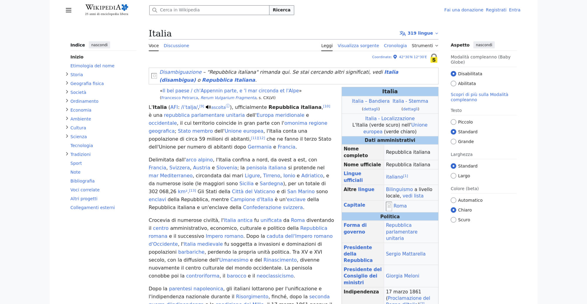 | Offenders: https://upload.wikimedia.org/wikipedia/commons/thumb/a/a5/Semi-protection-shackl...le-itwiki.svg.png https://upload.wikimedia.org/wikipedia/commons/thumb/f/f3/Map_of_Italy-it-2.svg/...taly-it-2.svg.png https://upload.wikimedia.org/wikipedia/commons/thumb/7/78/Flag_of_Italy_%281861%...931946%29.svg.png https://upload.wikimedia.org/wikipedia/commons/thumb/8/87/Magnifying_glass_icon_...icon_mgx2.svg.png https://upload.wikimedia.org/wikipedia/commons/thumb/6/62/Iron_Age_Italy-la.svg/..._Italy-la.svg.png https://upload.wikimedia.org/wikipedia/commons/thumb/d/df/Nuraghe_Su_Nuraxi_-_Ba..._-_Italy_-_29.jpg https://upload.wikimedia.org/wikipedia/commons/thumb/9/98/Regioni_dell%27Italia_..._Augustea.svg.png https://upload.wikimedia.org/wikipedia/commons/thumb/4/42/F_Romanum.jpg/250px-F_Romanum.jpg https://upload.wikimedia.org/wikipedia/commons/thumb/7/7a/Kingdom_of_Italy_%28HR...8HRE%29_-_962.png https://upload.wikimedia.org/wikipedia/commons/thumb/c/ce/Venedig_Aug_2020_1.jpg...ig_Aug_2020_1.jpg https://upload.wikimedia.org/wikipedia/commons/thumb/4/42/Castel_del_Monte_BW_20...14_12-26-11_r.jpg https://upload.wikimedia.org/wikipedia/commons/thumb/2/26/Italia_1494-it.svg/250...a_1494-it.svg.png https://upload.wikimedia.org/wikipedia/commons/thumb/8/89/Map_of_Palmanova_in_15...ris_Hoefnagel.jpg https://upload.wikimedia.org/wikipedia/commons/thumb/0/0b/Italy_1796_it.svg/250p...y_1796_it.svg.png https://upload.wikimedia.org/wikipedia/commons/thumb/3/34/Italia_1843.svg/250px-Italia_1843.svg.png https://upload.wikimedia.org/wikipedia/commons/thumb/7/7b/Garibaldi_%281866%29.j...di_%281866%29.jpg https://upload.wikimedia.org/wikipedia/commons/thumb/3/36/Risorgimento.gif/250px-Risorgimento.gif https://upload.wikimedia.org/wikipedia/commons/thumb/c/c0/Kingdom_of_Italy_1919_..._1919_map.svg.png https://upload.wikimedia.org/wikipedia/commons/thumb/f/f0/Benito_Mussolini_and_A..._Adolf_Hitler.jpg https://upload.wikimedia.org/wikipedia/it/thumb/2/23/Enrico_Berlinguer_e_Aldo_Mo...ma%2C_1977%29.jpg https://upload.wikimedia.org/wikipedia/it/thumb/b/ba/Agguato_di_via_Fani_-_Roma%..._Roma%2C_1978.jpg https://upload.wikimedia.org/wikipedia/it/thumb/1/1c/Borsellino-falcone.jpg/250p...llino-falcone.jpg https://upload.wikimedia.org/wikipedia/commons/thumb/f/f8/Italy_topographic_map-...map-blank.svg.png https://upload.wikimedia.org/wikipedia/commons/thumb/6/6d/Altimetria_Italia.svg/...ia_Italia.svg.png https://upload.wikimedia.org/wikipedia/commons/thumb/4/4b/Mont_Blanc_depuis_Valm...is_Valmorel_2.jpg https://upload.wikimedia.org/wikipedia/commons/thumb/8/86/Italia_Interazione_pla...he_tettoniche.JPG https://upload.wikimedia.org/wikipedia/commons/thumb/f/fb/Pompei_und_Vesuv.JPG/2...pei_und_Vesuv.JPG https://upload.wikimedia.org/wikipedia/commons/thumb/c/c7/L%27Aquila_eathquake_p...ke_prefettura.jpg https://upload.wikimedia.org/wikipedia/commons/thumb/b/b7/Belvedere_con_balaustr...tra_di_pietra.jpg https://upload.wikimedia.org/wikipedia/commons/thumb/d/d9/20110720_Verona_3078.j...0_Verona_3078.jpg https://upload.wikimedia.org/wikipedia/commons/thumb/d/d2/Koppen-Geiger_Mappa_IT..._presente.svg.png https://upload.wikimedia.org/wikipedia/commons/thumb/7/7d/Evoluzione_della_popol...%27Unit%C3%A0.png https://upload.wikimedia.org/wikipedia/commons/thumb/3/31/Italian_resident_popul...nt_population.png https://upload.wikimedia.org/wikipedia/commons/thumb/7/79/Figli_per_donna_ITA.jp...per_donna_ITA.jpg https://upload.wikimedia.org/wikipedia/commons/thumb/5/58/Francesco_Hayez_-_Ritr...andro_Manzoni.jpg https://upload.wikimedia.org/wikipedia/commons/thumb/d/dd/Dialetti_parlati_in_It...ati_in_Italia.png https://upload.wikimedia.org/wikipedia/commons/thumb/7/79/Arrows-folder-categori...ategorize.svg.png https://upload.wikimedia.org/wikipedia/commons/thumb/5/54/Bartolomeo_giuseppe_gu..._cremona_1743.JPG https://upload.wikimedia.org/wikipedia/commons/thumb/f/f0/Ladri-biciclette-piogg...lette-pioggia.jpg https://en.wikipedia.org/w/index.php...a.org/w/index.php https://en.wikipedia.org/w/index.php...a.org/w/index.php https://it.wikipedia.org/wiki/Special:CentralAutoLogin/start?useformat=desktop&type=script&usesul3=1 https://auth.wikimedia.org/metawiki/wiki/Special:CentralAutoLogin/checkLoggedIn...gin/checkLoggedIn |