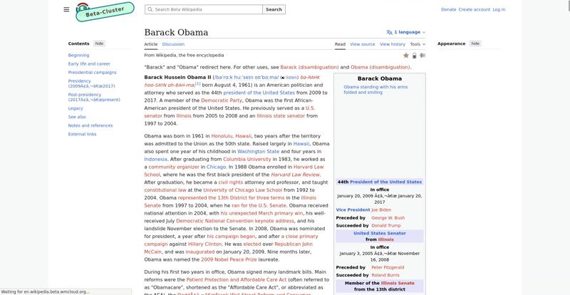 | Offenders: https://en.wikipedia.beta.wmcloud.org/static/images/project-logos/wikimedia-cloud-services.svg https://upload.wikimedia.org/wikipedia/commons/thumb/1/11/Barack_Obama_signature...signature.svg.png https://upload.wikimedia.org/wikipedia/commons/thumb/5/50/2004_Illinois_Senate_r...e_results.svg.png https://upload.wikimedia.org/wikipedia/commons/thumb/2/2b/58th_Presidential_Inau...-D-BP749-1327.jpg https://upload.wikimedia.org/wikipedia/commons/thumb/9/9f/Job_Growth_by_U.S._Pre...resident_-_v1.png |