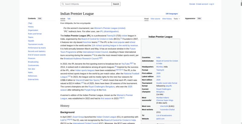 | Offenders: https://upload.wikimedia.org/wikipedia/en/thumb/1/1b/Semi-protection-shackle.svg...n-shackle.svg.png https://upload.wikimedia.org/wikipedia/en/thumb/8/84/Indian_Premier_League_Offic...cial_Logo.svg.png https://upload.wikimedia.org/wikipedia/en/thumb/4/41/Flag_of_India.svg/40px-Flag_of_India.svg.png https://upload.wikimedia.org/wikipedia/commons/thumb/6/67/IPL_T20_Chennai_vs_Kol...ai_vs_Kolkata.JPG https://upload.wikimedia.org/wikipedia/commons/thumb/a/a5/Flag_of_the_United_Kin...%281-2%29.svg.png https://upload.wikimedia.org/wikipedia/commons/thumb/a/af/Flag_of_South_Africa.s...th_Africa.svg.png https://upload.wikimedia.org/wikipedia/commons/thumb/d/dc/India_location_map.svg...ation_map.svg.png https://upload.wikimedia.org/wikipedia/en/timeline/2157om5n8gyp1fscjwj0xvevgp3q3tt.png https://upload.wikimedia.org/wikipedia/commons/thumb/c/cb/Flag_of_the_United_Ara..._Emirates.svg.png https://upload.wikimedia.org/wikipedia/commons/thumb/1/18/WestIndiesCricketFlagP...agPre1999.svg.png https://upload.wikimedia.org/wikipedia/en/thumb/a/a4/Flag_of_the_United_States.s...ed_States.svg.png https://upload.wikimedia.org/wikipedia/commons/thumb/0/0c/Red_pog.svg/20px-Red_pog.svg.png https://upload.wikimedia.org/wikipedia/en/thumb/b/be/Flag_of_England.svg/40px-Fl...f_England.svg.png https://upload.wikimedia.org/wikipedia/commons/thumb/3/3e/Flag_of_New_Zealand.sv...w_Zealand.svg.png https://upload.wikimedia.org/wikipedia/commons/thumb/8/88/Flag_of_Australia_%28c...verted%29.svg.png https://upload.wikimedia.org/wikipedia/commons/thumb/4/44/Virat_Kohli_with_AudiQ...i_with_AudiQ7.png https://upload.wikimedia.org/wikipedia/commons/thumb/d/df/Yuzvendra_Chahal_in_PM...PMO_New_Delhi.jpg https://upload.wikimedia.org/wikipedia/commons/thumb/f/f4/Tata_IPL_EDEN_47th_Mat...KKR_vs_SRH_02.png https://upload.wikimedia.org/wikipedia/commons/thumb/b/b0/Cricketball.png/40px-Cricketball.png https://upload.wikimedia.org/wikipedia/en/thumb/4/4a/Commons-logo.svg/40px-Commons-logo.svg.png https://upload.wikimedia.org/wikipedia/commons/thumb/5/52/Ipl.svg/120px-Ipl.svg.png https://upload.wikimedia.org/wikipedia/en/thumb/9/96/Symbol_category_class.svg/2...ory_class.svg.png https://upload.wikimedia.org/wikipedia/en/thumb/4/4a/Commons-logo.svg/20px-Commons-logo.svg.png https://upload.wikimedia.org/wikipedia/commons/thumb/c/cd/Cricket_pictogram.svg/...pictogram.svg.png https://upload.wikimedia.org/wikipedia/commons/thumb/b/bf/CLT20.svg/120px-CLT20.svg.png https://upload.wikimedia.org/wikipedia/en/thumb/8/8a/OOjs_UI_icon_edit-ltr-progr...ogressive.svg.png https://upload.wikimedia.org/wikipedia/commons/4/4d/Icon_pdf_file.png https://upload.wikimedia.org/wikipedia/commons/a/aa/Lock-red-alt-2.svg https://upload.wikimedia.org/wikipedia/commons/6/65/Lock-green.svg https://en.wikipedia.org/wiki/Special:CentralAutoLogin/start?useformat=desktop&type=script&usesul3=1 https://auth.wikimedia.org/metawiki/wiki/Special:CentralAutoLogin/checkLoggedIn...gin/checkLoggedIn |