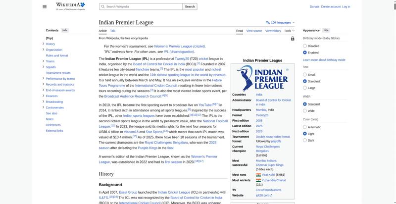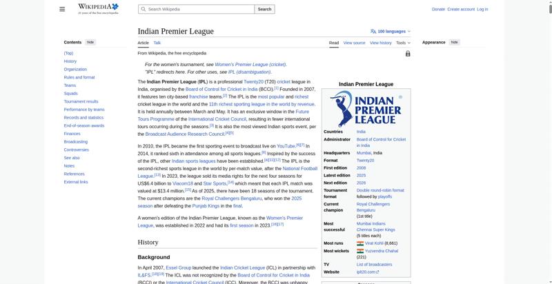 | Offenders: https://upload.wikimedia.org/wikipedia/en/thumb/1/1b/Semi-protection-shackle.svg...n-shackle.svg.png https://upload.wikimedia.org/wikipedia/en/thumb/8/84/Indian_Premier_League_Offic...cial_Logo.svg.png https://upload.wikimedia.org/wikipedia/en/thumb/4/41/Flag_of_India.svg/40px-Flag_of_India.svg.png https://upload.wikimedia.org/wikipedia/commons/thumb/6/67/IPL_T20_Chennai_vs_Kol...ai_vs_Kolkata.JPG https://upload.wikimedia.org/wikipedia/commons/thumb/a/a5/Flag_of_the_United_Kin...%281-2%29.svg.png https://upload.wikimedia.org/wikipedia/commons/thumb/a/af/Flag_of_South_Africa.s...th_Africa.svg.png https://upload.wikimedia.org/wikipedia/commons/thumb/d/dc/India_location_map.svg...ation_map.svg.png https://upload.wikimedia.org/wikipedia/en/timeline/2157om5n8gyp1fscjwj0xvevgp3q3tt.png https://upload.wikimedia.org/wikipedia/commons/thumb/c/cb/Flag_of_the_United_Ara..._Emirates.svg.png https://upload.wikimedia.org/wikipedia/commons/thumb/1/18/WestIndiesCricketFlagP...agPre1999.svg.png https://upload.wikimedia.org/wikipedia/en/thumb/a/a4/Flag_of_the_United_States.s...ed_States.svg.png https://upload.wikimedia.org/wikipedia/commons/thumb/0/0c/Red_pog.svg/20px-Red_pog.svg.png https://upload.wikimedia.org/wikipedia/en/thumb/b/be/Flag_of_England.svg/40px-Fl...f_England.svg.png https://upload.wikimedia.org/wikipedia/commons/thumb/3/3e/Flag_of_New_Zealand.sv...w_Zealand.svg.png https://upload.wikimedia.org/wikipedia/commons/thumb/8/88/Flag_of_Australia_%28c...verted%29.svg.png https://upload.wikimedia.org/wikipedia/commons/thumb/4/44/Virat_Kohli_with_AudiQ...i_with_AudiQ7.png https://upload.wikimedia.org/wikipedia/commons/thumb/d/df/Yuzvendra_Chahal_in_PM...PMO_New_Delhi.jpg https://upload.wikimedia.org/wikipedia/commons/thumb/f/f4/Tata_IPL_EDEN_47th_Mat...KKR_vs_SRH_02.png https://upload.wikimedia.org/wikipedia/commons/thumb/b/b0/Cricketball.png/40px-Cricketball.png https://upload.wikimedia.org/wikipedia/en/thumb/4/4a/Commons-logo.svg/40px-Commons-logo.svg.png https://upload.wikimedia.org/wikipedia/commons/thumb/5/52/Ipl.svg/120px-Ipl.svg.png https://upload.wikimedia.org/wikipedia/en/thumb/9/96/Symbol_category_class.svg/2...ory_class.svg.png https://upload.wikimedia.org/wikipedia/en/thumb/4/4a/Commons-logo.svg/20px-Commons-logo.svg.png https://upload.wikimedia.org/wikipedia/commons/thumb/c/cd/Cricket_pictogram.svg/...pictogram.svg.png https://upload.wikimedia.org/wikipedia/commons/thumb/b/bf/CLT20.svg/120px-CLT20.svg.png https://upload.wikimedia.org/wikipedia/en/thumb/8/8a/OOjs_UI_icon_edit-ltr-progr...ogressive.svg.png https://upload.wikimedia.org/wikipedia/commons/4/4d/Icon_pdf_file.png https://upload.wikimedia.org/wikipedia/commons/a/aa/Lock-red-alt-2.svg https://upload.wikimedia.org/wikipedia/commons/6/65/Lock-green.svg https://en.wikipedia.org/wiki/Special:CentralAutoLogin/start?useformat=desktop&type=script&usesul3=1 https://auth.wikimedia.org/metawiki/wiki/Special:CentralAutoLogin/checkLoggedIn...gin/checkLoggedIn |