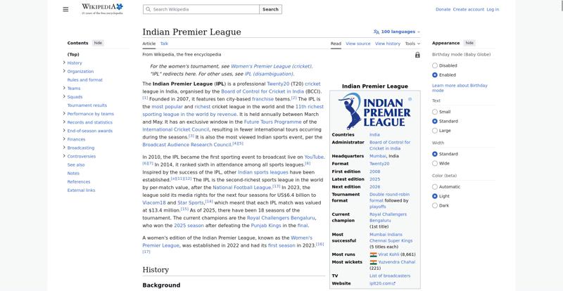 | Offenders: https://upload.wikimedia.org/wikipedia/en/thumb/1/1b/Semi-protection-shackle.svg...n-shackle.svg.png https://upload.wikimedia.org/wikipedia/en/thumb/8/84/Indian_Premier_League_Offic...cial_Logo.svg.png https://upload.wikimedia.org/wikipedia/en/thumb/4/41/Flag_of_India.svg/40px-Flag_of_India.svg.png https://upload.wikimedia.org/wikipedia/commons/thumb/a/a5/Flag_of_the_United_Kin...%281-2%29.svg.png https://upload.wikimedia.org/wikipedia/commons/thumb/6/67/IPL_T20_Chennai_vs_Kol...ai_vs_Kolkata.JPG https://upload.wikimedia.org/wikipedia/commons/thumb/a/af/Flag_of_South_Africa.s...th_Africa.svg.png https://upload.wikimedia.org/wikipedia/commons/thumb/c/cb/Flag_of_the_United_Ara..._Emirates.svg.png https://upload.wikimedia.org/wikipedia/commons/thumb/1/18/WestIndiesCricketFlagP...agPre1999.svg.png https://upload.wikimedia.org/wikipedia/en/thumb/a/a4/Flag_of_the_United_States.s...ed_States.svg.png https://upload.wikimedia.org/wikipedia/commons/thumb/d/dc/India_location_map.svg...ation_map.svg.png https://upload.wikimedia.org/wikipedia/commons/thumb/0/0c/Red_pog.svg/20px-Red_pog.svg.png https://upload.wikimedia.org/wikipedia/en/timeline/2157om5n8gyp1fscjwj0xvevgp3q3tt.png https://upload.wikimedia.org/wikipedia/en/thumb/b/be/Flag_of_England.svg/40px-Fl...f_England.svg.png https://upload.wikimedia.org/wikipedia/commons/thumb/3/3e/Flag_of_New_Zealand.sv...w_Zealand.svg.png https://upload.wikimedia.org/wikipedia/commons/thumb/8/88/Flag_of_Australia_%28c...verted%29.svg.png https://upload.wikimedia.org/wikipedia/commons/thumb/4/44/Virat_Kohli_with_AudiQ...i_with_AudiQ7.png https://upload.wikimedia.org/wikipedia/commons/thumb/d/df/Yuzvendra_Chahal_in_PM...PMO_New_Delhi.jpg https://upload.wikimedia.org/wikipedia/commons/thumb/f/f4/Tata_IPL_EDEN_47th_Mat...KKR_vs_SRH_02.png https://upload.wikimedia.org/wikipedia/commons/thumb/b/b0/Cricketball.png/40px-Cricketball.png https://upload.wikimedia.org/wikipedia/en/thumb/4/4a/Commons-logo.svg/40px-Commons-logo.svg.png https://upload.wikimedia.org/wikipedia/commons/thumb/5/52/Ipl.svg/120px-Ipl.svg.png https://upload.wikimedia.org/wikipedia/en/thumb/9/96/Symbol_category_class.svg/2...ory_class.svg.png https://upload.wikimedia.org/wikipedia/en/thumb/4/4a/Commons-logo.svg/20px-Commons-logo.svg.png https://upload.wikimedia.org/wikipedia/commons/thumb/c/cd/Cricket_pictogram.svg/...pictogram.svg.png https://upload.wikimedia.org/wikipedia/commons/thumb/b/bf/CLT20.svg/120px-CLT20.svg.png https://upload.wikimedia.org/wikipedia/en/thumb/8/8a/OOjs_UI_icon_edit-ltr-progr...ogressive.svg.png https://upload.wikimedia.org/wikipedia/commons/4/4d/Icon_pdf_file.png https://upload.wikimedia.org/wikipedia/commons/a/aa/Lock-red-alt-2.svg https://upload.wikimedia.org/wikipedia/commons/6/65/Lock-green.svg https://en.wikipedia.org/wiki/Special:CentralAutoLogin/start?useformat=desktop&type=script&usesul3=1 https://auth.wikimedia.org/metawiki/wiki/Special:CentralAutoLogin/checkLoggedIn...gin/checkLoggedIn |