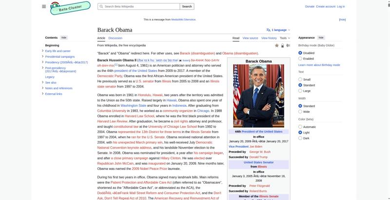 | Offenders: https://en.wikipedia.beta.wmcloud.org/static/images/project-logos/wikimedia-cloud-services.svg https://upload.wikimedia.org/wikipedia/commons/thumb/1/11/Barack_Obama_signature...signature.svg.png https://upload.wikimedia.org/wikipedia/commons/thumb/5/50/2004_Illinois_Senate_r...e_results.svg.png https://upload.wikimedia.org/wikipedia/commons/thumb/2/2b/58th_Presidential_Inau...-D-BP749-1327.jpg https://upload.wikimedia.org/wikipedia/commons/thumb/9/9f/Job_Growth_by_U.S._Pre...resident_-_v1.png |