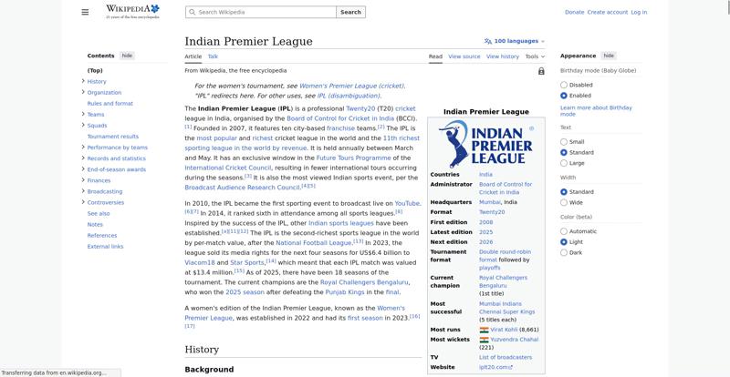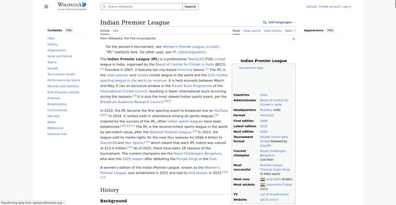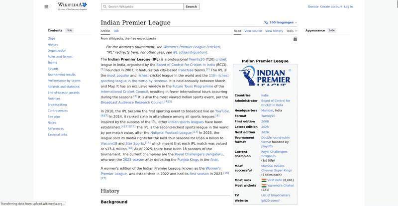 | Offenders: https://upload.wikimedia.org/wikipedia/en/thumb/1/1b/Semi-protection-shackle.svg...n-shackle.svg.png https://upload.wikimedia.org/wikipedia/en/thumb/8/84/Indian_Premier_League_Offic...cial_Logo.svg.png https://upload.wikimedia.org/wikipedia/en/thumb/4/41/Flag_of_India.svg/40px-Flag_of_India.svg.png https://upload.wikimedia.org/wikipedia/commons/thumb/a/a5/Flag_of_the_United_Kin...%281-2%29.svg.png https://upload.wikimedia.org/wikipedia/commons/thumb/6/67/IPL_T20_Chennai_vs_Kol...ai_vs_Kolkata.JPG https://upload.wikimedia.org/wikipedia/commons/thumb/a/af/Flag_of_South_Africa.s...th_Africa.svg.png https://upload.wikimedia.org/wikipedia/commons/thumb/c/cb/Flag_of_the_United_Ara..._Emirates.svg.png https://upload.wikimedia.org/wikipedia/commons/thumb/1/18/WestIndiesCricketFlagP...agPre1999.svg.png https://upload.wikimedia.org/wikipedia/en/thumb/a/a4/Flag_of_the_United_States.s...ed_States.svg.png https://upload.wikimedia.org/wikipedia/commons/thumb/d/dc/India_location_map.svg...ation_map.svg.png https://upload.wikimedia.org/wikipedia/commons/thumb/0/0c/Red_pog.svg/20px-Red_pog.svg.png https://upload.wikimedia.org/wikipedia/en/timeline/2157om5n8gyp1fscjwj0xvevgp3q3tt.png https://upload.wikimedia.org/wikipedia/en/thumb/b/be/Flag_of_England.svg/40px-Fl...f_England.svg.png https://upload.wikimedia.org/wikipedia/commons/thumb/3/3e/Flag_of_New_Zealand.sv...w_Zealand.svg.png https://upload.wikimedia.org/wikipedia/commons/thumb/8/88/Flag_of_Australia_%28c...verted%29.svg.png https://upload.wikimedia.org/wikipedia/commons/thumb/4/44/Virat_Kohli_with_AudiQ...i_with_AudiQ7.png https://upload.wikimedia.org/wikipedia/commons/thumb/d/df/Yuzvendra_Chahal_in_PM...PMO_New_Delhi.jpg https://upload.wikimedia.org/wikipedia/commons/thumb/f/f4/Tata_IPL_EDEN_47th_Mat...KKR_vs_SRH_02.png https://upload.wikimedia.org/wikipedia/commons/thumb/b/b0/Cricketball.png/40px-Cricketball.png https://upload.wikimedia.org/wikipedia/en/thumb/4/4a/Commons-logo.svg/40px-Commons-logo.svg.png https://upload.wikimedia.org/wikipedia/commons/thumb/5/52/Ipl.svg/120px-Ipl.svg.png https://upload.wikimedia.org/wikipedia/en/thumb/9/96/Symbol_category_class.svg/2...ory_class.svg.png https://upload.wikimedia.org/wikipedia/en/thumb/4/4a/Commons-logo.svg/20px-Commons-logo.svg.png https://upload.wikimedia.org/wikipedia/commons/thumb/c/cd/Cricket_pictogram.svg/...pictogram.svg.png https://upload.wikimedia.org/wikipedia/commons/thumb/b/bf/CLT20.svg/120px-CLT20.svg.png https://upload.wikimedia.org/wikipedia/en/thumb/8/8a/OOjs_UI_icon_edit-ltr-progr...ogressive.svg.png https://upload.wikimedia.org/wikipedia/commons/4/4d/Icon_pdf_file.png https://upload.wikimedia.org/wikipedia/commons/a/aa/Lock-red-alt-2.svg https://upload.wikimedia.org/wikipedia/commons/6/65/Lock-green.svg https://en.wikipedia.org/wiki/Special:CentralAutoLogin/start?useformat=desktop&type=script&usesul3=1 https://auth.wikimedia.org/metawiki/wiki/Special:CentralAutoLogin/checkLoggedIn...gin/checkLoggedIn |