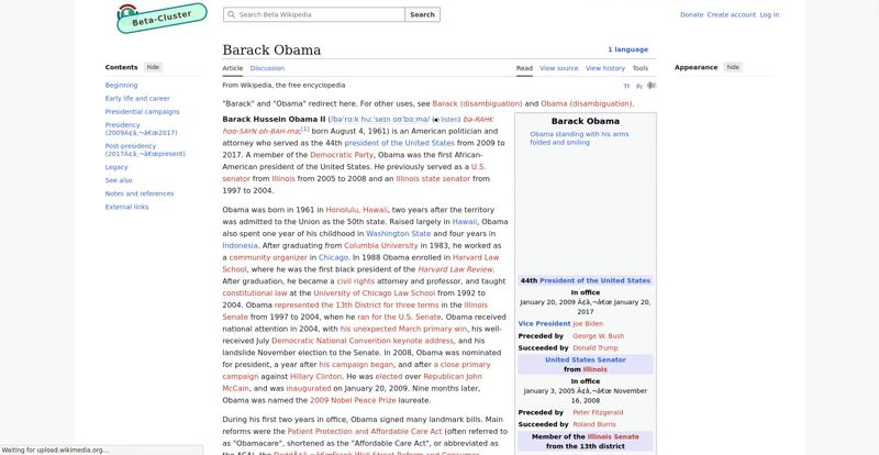 | Offenders: https://en.wikipedia.beta.wmcloud.org/static/images/project-logos/wikimedia-cloud-services.svg https://upload.wikimedia.org/wikipedia/commons/thumb/1/11/Barack_Obama_signature...signature.svg.png https://upload.wikimedia.org/wikipedia/commons/thumb/5/50/2004_Illinois_Senate_r...e_results.svg.png https://upload.wikimedia.org/wikipedia/commons/thumb/2/2b/58th_Presidential_Inau...-D-BP749-1327.jpg https://upload.wikimedia.org/wikipedia/commons/thumb/9/9f/Job_Growth_by_U.S._Pre...resident_-_v1.png |