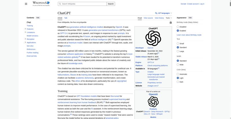 | Offenders: https://upload.wikimedia.org/wikipedia/en/thumb/1/1b/Semi-protection-shackle.svg...n-shackle.svg.png https://upload.wikimedia.org/wikipedia/commons/thumb/6/66/OpenAI_logo_2025_%28sy...symbol%29.svg.png https://upload.wikimedia.org/wikipedia/commons/thumb/6/66/OpenAI_logo_2025_%28sy...symbol%29.svg.png https://upload.wikimedia.org/wikipedia/commons/thumb/b/b5/Three-stage_large_lang..._workflow.svg.png https://upload.wikimedia.org/wikipedia/commons/thumb/4/47/A_pictorial_interpreta...ed_by_ChatGPT.jpg https://upload.wikimedia.org/wikipedia/commons/thumb/3/3a/ChatGPT_hallucination....hallucination.png https://upload.wikimedia.org/wikipedia/commons/6/65/Lock-green.svg https://upload.wikimedia.org/wikipedia/commons/4/4d/Icon_pdf_file.png https://upload.wikimedia.org/wikipedia/commons/a/aa/Lock-red-alt-2.svg https://upload.wikimedia.org/wikipedia/commons/thumb/8/8d/Sam_Altman_CropEdit_Ja...t_James_Tamim.jpg https://upload.wikimedia.org/wikipedia/commons/thumb/b/b6/The_AI_Arms_Race_Is_Ch...erything.webp.png https://upload.wikimedia.org/wikipedia/commons/thumb/9/97/Chatgpt_usage.svg/250p...gpt_usage.svg.png https://upload.wikimedia.org/wikipedia/commons/thumb/e/eb/Countries_where_ChatGP...available.svg.png https://upload.wikimedia.org/wikipedia/commons/thumb/8/84/ChatGPT_essay_draft.pn...T_essay_draft.png https://upload.wikimedia.org/wikipedia/commons/thumb/2/2e/Books_about_ChatGPT_in...aka_bookstore.jpg https://upload.wikimedia.org/wikipedia/commons/thumb/d/de/Globe_of_letters.svg/2...f_letters.svg.png https://upload.wikimedia.org/wikipedia/commons/thumb/a/a9/Noun-technology.svg/20...echnology.svg.png https://upload.wikimedia.org/wikipedia/en/thumb/4/4a/Commons-logo.svg/40px-Commons-logo.svg.png https://upload.wikimedia.org/wikipedia/en/thumb/8/8a/OOjs_UI_icon_edit-ltr-progr...ogressive.svg.png https://upload.wikimedia.org/wikipedia/en/thumb/9/96/Symbol_category_class.svg/2...ory_class.svg.png https://upload.wikimedia.org/wikipedia/commons/d/d6/Lock-gray-alt-2.svg https://en.wikipedia.org/wiki/Special:CentralAutoLogin/start?useformat=desktop&type=script&usesul3=1 https://auth.wikimedia.org/metawiki/wiki/Special:CentralAutoLogin/checkLoggedIn...gin/checkLoggedIn |