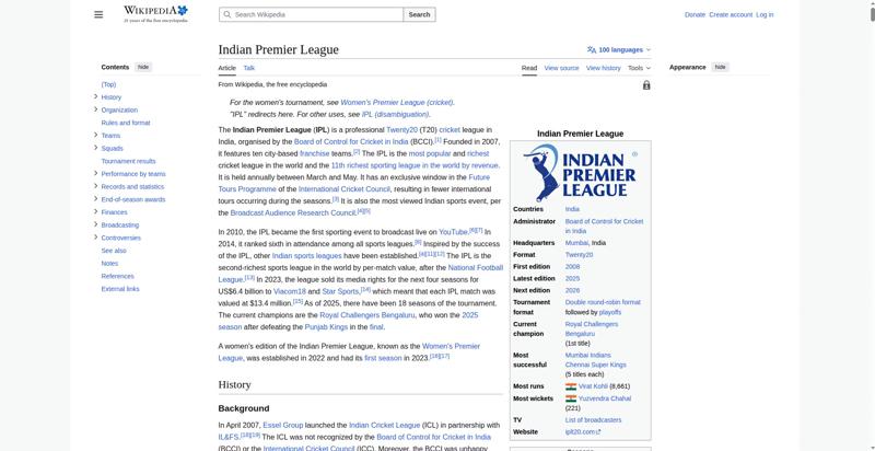 | Offenders: https://upload.wikimedia.org/wikipedia/en/thumb/1/1b/Semi-protection-shackle.svg...n-shackle.svg.png https://upload.wikimedia.org/wikipedia/en/thumb/8/84/Indian_Premier_League_Offic...cial_Logo.svg.png https://upload.wikimedia.org/wikipedia/en/thumb/4/41/Flag_of_India.svg/40px-Flag_of_India.svg.png https://upload.wikimedia.org/wikipedia/commons/thumb/6/67/IPL_T20_Chennai_vs_Kol...ai_vs_Kolkata.JPG https://upload.wikimedia.org/wikipedia/commons/thumb/a/a5/Flag_of_the_United_Kin...%281-2%29.svg.png https://upload.wikimedia.org/wikipedia/commons/thumb/a/af/Flag_of_South_Africa.s...th_Africa.svg.png https://upload.wikimedia.org/wikipedia/commons/thumb/c/cb/Flag_of_the_United_Ara..._Emirates.svg.png https://upload.wikimedia.org/wikipedia/commons/thumb/1/18/WestIndiesCricketFlagP...agPre1999.svg.png https://upload.wikimedia.org/wikipedia/en/thumb/a/a4/Flag_of_the_United_States.s...ed_States.svg.png https://upload.wikimedia.org/wikipedia/commons/thumb/d/dc/India_location_map.svg...ation_map.svg.png https://upload.wikimedia.org/wikipedia/commons/thumb/0/0c/Red_pog.svg/20px-Red_pog.svg.png https://upload.wikimedia.org/wikipedia/en/timeline/2157om5n8gyp1fscjwj0xvevgp3q3tt.png https://upload.wikimedia.org/wikipedia/en/thumb/b/be/Flag_of_England.svg/40px-Fl...f_England.svg.png https://upload.wikimedia.org/wikipedia/commons/thumb/3/3e/Flag_of_New_Zealand.sv...w_Zealand.svg.png https://upload.wikimedia.org/wikipedia/commons/thumb/8/88/Flag_of_Australia_%28c...verted%29.svg.png https://upload.wikimedia.org/wikipedia/commons/thumb/4/44/Virat_Kohli_with_AudiQ...i_with_AudiQ7.png https://upload.wikimedia.org/wikipedia/commons/thumb/d/df/Yuzvendra_Chahal_in_PM...PMO_New_Delhi.jpg https://upload.wikimedia.org/wikipedia/commons/thumb/f/f4/Tata_IPL_EDEN_47th_Mat...KKR_vs_SRH_02.png https://upload.wikimedia.org/wikipedia/commons/thumb/b/b0/Cricketball.png/40px-Cricketball.png https://upload.wikimedia.org/wikipedia/en/thumb/4/4a/Commons-logo.svg/40px-Commons-logo.svg.png https://upload.wikimedia.org/wikipedia/commons/thumb/5/52/Ipl.svg/120px-Ipl.svg.png https://upload.wikimedia.org/wikipedia/en/thumb/9/96/Symbol_category_class.svg/2...ory_class.svg.png https://upload.wikimedia.org/wikipedia/en/thumb/4/4a/Commons-logo.svg/20px-Commons-logo.svg.png https://upload.wikimedia.org/wikipedia/commons/thumb/c/cd/Cricket_pictogram.svg/...pictogram.svg.png https://upload.wikimedia.org/wikipedia/commons/thumb/b/bf/CLT20.svg/120px-CLT20.svg.png https://upload.wikimedia.org/wikipedia/en/thumb/8/8a/OOjs_UI_icon_edit-ltr-progr...ogressive.svg.png https://upload.wikimedia.org/wikipedia/commons/4/4d/Icon_pdf_file.png https://upload.wikimedia.org/wikipedia/commons/a/aa/Lock-red-alt-2.svg https://upload.wikimedia.org/wikipedia/commons/6/65/Lock-green.svg https://en.wikipedia.org/wiki/Special:CentralAutoLogin/start?useformat=desktop&type=script&usesul3=1 https://auth.wikimedia.org/metawiki/wiki/Special:CentralAutoLogin/checkLoggedIn...gin/checkLoggedIn |