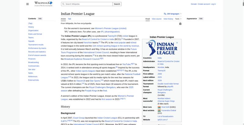 | Offenders: https://upload.wikimedia.org/wikipedia/en/thumb/1/1b/Semi-protection-shackle.svg...n-shackle.svg.png https://upload.wikimedia.org/wikipedia/en/thumb/8/84/Indian_Premier_League_Offic...cial_Logo.svg.png https://upload.wikimedia.org/wikipedia/en/thumb/4/41/Flag_of_India.svg/40px-Flag_of_India.svg.png https://upload.wikimedia.org/wikipedia/commons/thumb/6/67/IPL_T20_Chennai_vs_Kol...ai_vs_Kolkata.JPG https://upload.wikimedia.org/wikipedia/commons/thumb/a/a5/Flag_of_the_United_Kin...%281-2%29.svg.png https://upload.wikimedia.org/wikipedia/commons/thumb/a/af/Flag_of_South_Africa.s...th_Africa.svg.png https://upload.wikimedia.org/wikipedia/commons/thumb/c/cb/Flag_of_the_United_Ara..._Emirates.svg.png https://upload.wikimedia.org/wikipedia/commons/thumb/d/dc/India_location_map.svg...ation_map.svg.png https://upload.wikimedia.org/wikipedia/en/timeline/2157om5n8gyp1fscjwj0xvevgp3q3tt.png https://upload.wikimedia.org/wikipedia/commons/thumb/1/18/WestIndiesCricketFlagP...agPre1999.svg.png https://upload.wikimedia.org/wikipedia/en/thumb/a/a4/Flag_of_the_United_States.s...ed_States.svg.png https://upload.wikimedia.org/wikipedia/commons/thumb/0/0c/Red_pog.svg/20px-Red_pog.svg.png https://upload.wikimedia.org/wikipedia/en/thumb/b/be/Flag_of_England.svg/40px-Fl...f_England.svg.png https://upload.wikimedia.org/wikipedia/commons/thumb/3/3e/Flag_of_New_Zealand.sv...w_Zealand.svg.png https://upload.wikimedia.org/wikipedia/commons/thumb/8/88/Flag_of_Australia_%28c...verted%29.svg.png https://upload.wikimedia.org/wikipedia/commons/thumb/4/44/Virat_Kohli_with_AudiQ...i_with_AudiQ7.png https://upload.wikimedia.org/wikipedia/commons/thumb/d/df/Yuzvendra_Chahal_in_PM...PMO_New_Delhi.jpg https://upload.wikimedia.org/wikipedia/commons/thumb/f/f4/Tata_IPL_EDEN_47th_Mat...KKR_vs_SRH_02.png https://upload.wikimedia.org/wikipedia/commons/thumb/b/b0/Cricketball.png/40px-Cricketball.png https://upload.wikimedia.org/wikipedia/en/thumb/4/4a/Commons-logo.svg/40px-Commons-logo.svg.png https://upload.wikimedia.org/wikipedia/commons/thumb/5/52/Ipl.svg/120px-Ipl.svg.png https://upload.wikimedia.org/wikipedia/en/thumb/9/96/Symbol_category_class.svg/2...ory_class.svg.png https://upload.wikimedia.org/wikipedia/en/thumb/4/4a/Commons-logo.svg/20px-Commons-logo.svg.png https://upload.wikimedia.org/wikipedia/commons/thumb/c/cd/Cricket_pictogram.svg/...pictogram.svg.png https://upload.wikimedia.org/wikipedia/commons/thumb/b/bf/CLT20.svg/120px-CLT20.svg.png https://upload.wikimedia.org/wikipedia/en/thumb/8/8a/OOjs_UI_icon_edit-ltr-progr...ogressive.svg.png https://upload.wikimedia.org/wikipedia/commons/4/4d/Icon_pdf_file.png https://upload.wikimedia.org/wikipedia/commons/a/aa/Lock-red-alt-2.svg https://upload.wikimedia.org/wikipedia/commons/6/65/Lock-green.svg https://en.wikipedia.org/wiki/Special:CentralAutoLogin/start?useformat=desktop&type=script&usesul3=1 https://auth.wikimedia.org/metawiki/wiki/Special:CentralAutoLogin/checkLoggedIn...gin/checkLoggedIn |
