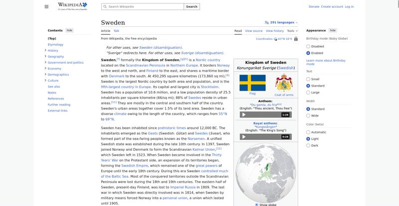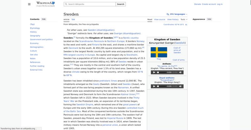 | Offenders: https://upload.wikimedia.org/wikipedia/en/thumb/1/1b/Semi-protection-shackle.svg...n-shackle.svg.png https://upload.wikimedia.org/wikipedia/en/thumb/4/4c/Flag_of_Sweden.svg/250px-Flag_of_Sweden.svg.png https://upload.wikimedia.org/wikipedia/commons/thumb/e/e5/Great_coat_of_arms_of_...of_Sweden.svg.png https://upload.wikimedia.org/wikipedia/commons/thumb/b/b0/Increase2.svg/20px-Increase2.svg.png https://upload.wikimedia.org/wikipedia/commons/thumb/c/c2/EU-Sweden_%28orthograp...ection%29.svg.png https://upload.wikimedia.org/wikipedia/commons/thumb/0/06/EU-Sweden.svg/330px-EU-Sweden.svg.png https://upload.wikimedia.org/wikipedia/commons/thumb/7/74/Increase_Neutral.svg/2...e_Neutral.svg.png https://upload.wikimedia.org/wikipedia/commons/thumb/5/59/Increase_Negative.svg/..._Negative.svg.png https://upload.wikimedia.org/wikipedia/commons/thumb/a/ac/Vendel_I_helmet_456057...helmet_456057.jpg https://upload.wikimedia.org/wikipedia/commons/thumb/a/a7/Vikings-Voyages.png/33...kings-Voyages.png https://upload.wikimedia.org/wikipedia/commons/thumb/b/bd/Bildsten_med_skepp_800...de%2C_Gotland.jpg https://upload.wikimedia.org/wikipedia/commons/thumb/4/48/Map_of_Sweden_ca_1280....weden_ca_1280.png https://upload.wikimedia.org/wikipedia/commons/thumb/5/58/Gustav_Vasa.jpg/250px-Gustav_Vasa.jpg https://upload.wikimedia.org/wikipedia/commons/thumb/c/c6/Gustave_Adolphe_at_Bre...lter-f3706497.jpg https://upload.wikimedia.org/wikipedia/commons/thumb/9/90/Swedish_Empire.svg/250...sh_Empire.svg.png https://upload.wikimedia.org/wikipedia/commons/thumb/e/e9/Marten%27s_Poltava.jpg...n%27s_Poltava.jpg https://upload.wikimedia.org/wikipedia/commons/thumb/c/c6/Starvation_image_from_...eslandet_1867.jpg https://upload.wikimedia.org/wikipedia/commons/thumb/4/4d/Farewell_to_home%2C_G%...%28cropped%29.jpg https://upload.wikimedia.org/wikipedia/commons/thumb/e/e2/Olivecrona_erlander_38..._erlander_380.jpg https://upload.wikimedia.org/wikipedia/commons/thumb/7/7c/Tratado_de_Lisboa_13_1...007_%28081%29.jpg https://upload.wikimedia.org/wikipedia/commons/thumb/7/72/Vy_mot_Stora_Sj%C3%B6f...n_Saltoluokta.jpg https://upload.wikimedia.org/wikipedia/commons/thumb/b/b1/Sand%C3%B6n_-_KMB_-_16...6001000454384.jpg https://upload.wikimedia.org/wikipedia/commons/thumb/2/2f/Koppen-Geiger_Map_v2_S...80%932020.svg.png https://upload.wikimedia.org/wikipedia/commons/thumb/e/e3/Sweden_Vegetation_Zone...etation_Zones.jpg https://upload.wikimedia.org/wikipedia/commons/thumb/6/67/King_Carl_XVI_Gustaf_a..._2009_Cropped.png https://upload.wikimedia.org/wikipedia/commons/thumb/c/ca/Ulf_Kristersson_on_29_..._29_June_2023.jpg https://upload.wikimedia.org/wikipedia/commons/thumb/3/38/Rosenbad_2006.jpg/330px-Rosenbad_2006.jpg https://upload.wikimedia.org/wikipedia/commons/thumb/0/00/Riksdag.ipred_b9dn510_..._b9dn510_4451.jpg https://upload.wikimedia.org/wikipedia/commons/thumb/d/da/SWE-Map_Kommuner2007.s...muner2007.svg.png https://upload.wikimedia.org/wikipedia/commons/thumb/0/07/Hogsta_domstolen_Stock...len_Stockholm.jpg https://upload.wikimedia.org/wikipedia/commons/thumb/3/39/P20230705AS-0417_%2853...3233830047%29.jpg https://upload.wikimedia.org/wikipedia/commons/thumb/e/e3/Saab_JAS_39_Gripen_at_...tered%29_copy.jpg https://upload.wikimedia.org/wikipedia/commons/thumb/3/30/Stridsfordon_90_Reving...evinge_2012-2.jpg https://upload.wikimedia.org/wikipedia/commons/thumb/3/3c/Volvo_EX90_Auto_Zueric...2024_DSC_6147.jpg https://upload.wikimedia.org/wikipedia/commons/thumb/d/d1/IKEA_%288020223012%29....8020223012%29.jpg https://upload.wikimedia.org/wikipedia/commons/thumb/6/64/H%26M_Canal_City_Hakat...y_Hakata_shop.JPG https://upload.wikimedia.org/wikipedia/commons/thumb/2/20/Spotify_App_%282374588...3745887894%29.jpg https://upload.wikimedia.org/wikipedia/commons/thumb/1/1d/Ringhals.JPG/250px-Ringhals.JPG https://upload.wikimedia.org/wikipedia/commons/thumb/0/01/%C3%98resund_Bridge_fr...eptember_2015.jpg https://upload.wikimedia.org/wikipedia/commons/thumb/e/ed/E6-E20_Olskroksmotet_i...in_Gothenburg.png https://upload.wikimedia.org/wikipedia/commons/thumb/d/d0/Hall%2C_Stockholm_Cent...ntral_Station.jpg https://upload.wikimedia.org/wikipedia/commons/thumb/6/6e/AlfredNobel_adjusted.j...obel_adjusted.jpg https://upload.wikimedia.org/wikipedia/commons/thumb/b/b2/Swedishpopdensity.svg/...opdensity.svg.png https://upload.wikimedia.org/wikipedia/commons/thumb/f/f4/Katarina_kyrka_Februar...ruary_2015_02.jpg https://upload.wikimedia.org/wikipedia/commons/thumb/6/64/Uppsala_University_202...iversity_2023.jpg https://upload.wikimedia.org/wikipedia/commons/thumb/c/cb/ABBA_-_TopPop_1974_5.p...TopPop_1974_5.png https://upload.wikimedia.org/wikipedia/commons/thumb/4/41/%C3%96stermalm%2C_Stoc...amio_%2876%29.jpg https://upload.wikimedia.org/wikipedia/commons/thumb/1/1a/00_1110_Kalmar_domkyrk...lmar_domkyrka.jpg https://upload.wikimedia.org/wikipedia/commons/thumb/6/65/Sveriges_Television%2C...levision%2C_2.jpg https://upload.wikimedia.org/wikipedia/commons/thumb/6/6c/Portrait_of_August_Str...rd_Bergh_1905.jpg https://upload.wikimedia.org/wikipedia/commons/thumb/0/06/Inger_Nilsson_as_Pippi...C3%A5ngstrump.jpg https://upload.wikimedia.org/wikipedia/commons/thumb/f/f4/Valborg_2132_%28713599...7135992133%29.jpg https://upload.wikimedia.org/wikipedia/commons/thumb/8/85/Lucia_2018_NZ7_1187_%2...6327820671%29.jpg https://upload.wikimedia.org/wikipedia/commons/thumb/0/02/Sveriges_Nationaldag_2...ionaldag_2014.jpg https://upload.wikimedia.org/wikipedia/commons/thumb/2/22/Bj%C3%B6rn_Borg_in_akt...elnr_930-2090.jpg https://upload.wikimedia.org/wikipedia/en/thumb/4/4c/Flag_of_Sweden.svg/40px-Flag_of_Sweden.svg.png https://upload.wikimedia.org/wikipedia/commons/thumb/9/99/Wiktionary-logo-en-v2....ogo-en-v2.svg.png https://upload.wikimedia.org/wikipedia/en/thumb/4/4a/Commons-logo.svg/20px-Commons-logo.svg.png https://upload.wikimedia.org/wikipedia/commons/thumb/2/24/Wikinews-logo.svg/40px...news-logo.svg.png https://upload.wikimedia.org/wikipedia/commons/thumb/f/fa/Wiki