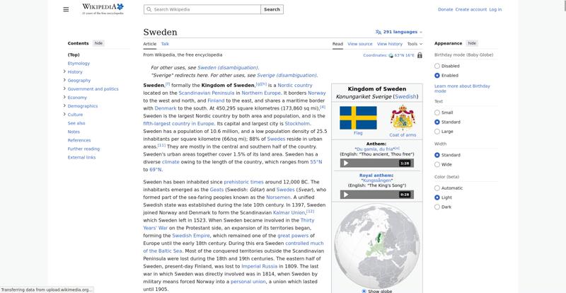 | Offenders: https://en.wikipedia.org/static/images/mobile/copyright/wikipedia-wordmark-en-25.svg https://en.wikipedia.org/static/images/mobile/copyright/wikipedia-tagline-en-25.svg https://upload.wikimedia.org/wikipedia/en/thumb/4/4c/Flag_of_Sweden.svg/250px-Flag_of_Sweden.svg.png https://upload.wikimedia.org/wikipedia/commons/thumb/e/e3/Sweden_Vegetation_Zone...etation_Zones.jpg |