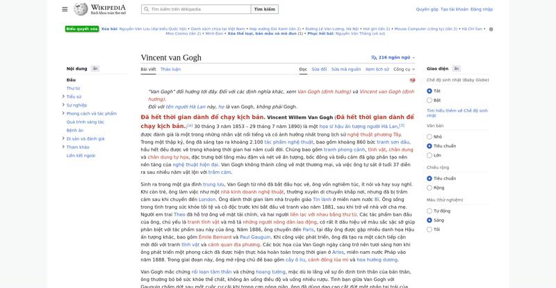 | Offenders: https://upload.wikimedia.org/wikipedia/commons/thumb/9/95/1000_b%C3%A0i_c%C6%A1_...E1%BA%A3n.svg.png https://upload.wikimedia.org/wikipedia/commons/thumb/1/12/Famille_van_Gogh.JPG/2...ille_van_Gogh.JPG https://upload.wikimedia.org/wikipedia/commons/thumb/7/74/VincentVanGoghFoto.jpg...ntVanGoghFoto.jpg https://upload.wikimedia.org/wikipedia/commons/thumb/4/48/Cuesmes_JPG001.jpg/250...uesmes_JPG001.jpg https://upload.wikimedia.org/wikipedia/commons/thumb/f/f9/Vincent_Willem_van_Gog..._van_Gogh_016.jpg https://upload.wikimedia.org/wikipedia/commons/thumb/a/af/Vincent_Van_Gogh_-_The...Potato_Eaters.png https://upload.wikimedia.org/wikipedia/commons/thumb/a/aa/Paris_rue_lepic_54.jpg..._rue_lepic_54.jpg https://upload.wikimedia.org/wikipedia/commons/thumb/2/21/Vincent_Willem_van_Gog...t_%28Yorck%29.jpg https://upload.wikimedia.org/wikipedia/commons/thumb/c/cd/VanGogh-starry_night.j...-starry_night.jpg https://upload.wikimedia.org/wikipedia/commons/thumb/9/9f/Toulouse-Lautrec_de_He..._van_Gogh_Sun.jpg https://upload.wikimedia.org/wikipedia/commons/thumb/0/01/Vincent_van_Gogh_-_Sta...e_Art_Project.jpg https://upload.wikimedia.org/wikipedia/commons/thumb/0/0b/Jean-Fran%C3%A7ois_Mil..._%28II%29_013.jpg https://upload.wikimedia.org/wikipedia/commons/thumb/a/a5/Tsunami_by_hokusai_19t..._19th_century.jpg https://upload.wikimedia.org/wikipedia/commons/thumb/c/cf/Vincent_Willem_van_Gog..._van_Gogh_098.jpg https://upload.wikimedia.org/wikipedia/commons/thumb/2/2c/Vincent_Willem_van_Gog..._van_Gogh_059.jpg https://upload.wikimedia.org/wikipedia/commons/thumb/a/a5/Van_Gogh_-_Bildnis_der...C3%BCnstlers.jpeg https://upload.wikimedia.org/wikipedia/commons/thumb/3/3c/Vincent_van_Gogh_-_Eug...e_Art_Project.jpg https://upload.wikimedia.org/wikipedia/commons/thumb/a/a7/Vincent_van_Gogh_-_Por...Joseph_Roulin.jpg https://upload.wikimedia.org/wikipedia/commons/thumb/d/d2/Vincent_Willem_van_Gog..._van_Gogh_084.jpg https://upload.wikimedia.org/wikipedia/commons/thumb/b/b2/Vincent_van_Gogh_-_Sel...e_Art_Project.jpg https://upload.wikimedia.org/wikipedia/commons/thumb/a/aa/Vincent_van_Gogh_-_Sel...e_Art_Project.jpg https://upload.wikimedia.org/wikipedia/commons/thumb/a/a8/Van_Gogh_Self-Portrait...-Metropolitan.jpg https://upload.wikimedia.org/wikipedia/commons/thumb/1/18/Vincent_van_Gogh_-_Sel..._%28719161%29.jpg https://upload.wikimedia.org/wikipedia/commons/thumb/7/71/Vincent_Willem_van_Gog..._van_Gogh_102.jpg https://upload.wikimedia.org/wikipedia/commons/thumb/4/46/Vincent_Willem_van_Gog..._van_Gogh_127.jpg https://upload.wikimedia.org/wikipedia/commons/thumb/b/b4/Vincent_Willem_van_Gog..._van_Gogh_128.jpg https://upload.wikimedia.org/wikipedia/commons/thumb/3/3e/Irises-Vincent_van_Gog...cent_van_Gogh.jpg https://upload.wikimedia.org/wikipedia/commons/thumb/6/68/Vincent_van_Gogh_-_Alm...e_Art_Project.jpg https://upload.wikimedia.org/wikipedia/commons/thumb/3/33/Vincent_van_Gogh_-_Iri...e_Art_Project.jpg https://upload.wikimedia.org/wikipedia/commons/thumb/8/8e/Van_Gogh_-_Vase_of_Ros...Vase_of_Roses.jpg https://upload.wikimedia.org/wikipedia/commons/thumb/7/75/Vincent_van_Gogh_-_Roa...2-15_May_1890.jpg https://upload.wikimedia.org/wikipedia/commons/thumb/e/e8/Van_Gogh_The_Olive_Tre..._Olive_Trees..jpg https://upload.wikimedia.org/wikipedia/commons/thumb/d/de/Van_Gogh_Starry_Night_...Night_Drawing.jpg https://upload.wikimedia.org/wikipedia/commons/thumb/0/08/Van_Gogh_-_Zypressen_m...chen_Figuren.jpeg https://upload.wikimedia.org/wikipedia/commons/thumb/6/63/Vincent_van_Gogh_-_Whe...e_Art_Project.jpg https://upload.wikimedia.org/wikipedia/commons/thumb/1/11/Vincent_Van_Gogh_0016....Van_Gogh_0016.jpg https://upload.wikimedia.org/wikipedia/commons/thumb/1/17/Vincent_Willem_van_Gog..._van_Gogh_014.jpg https://upload.wikimedia.org/wikipedia/commons/thumb/4/4c/Vincent_van_Gogh_-_De_...e_Art_Project.jpg https://upload.wikimedia.org/wikipedia/commons/thumb/c/c0/Van_Gogh_-_Bl%C3%BChen...ssen_umgeben.jpeg https://upload.wikimedia.org/wikipedia/commons/thumb/9/95/Vincent_Van_Gogh_0018....Van_Gogh_0018.jpg https://upload.wikimedia.org/wikipedia/commons/thumb/9/98/Vincent_van_Gogh_-_Whe...e_Art_Project.jpg https://upload.wikimedia.org/wikipedia/commons/thumb/1/1c/Vincent_Willem_van_Gog..._van_Gogh_007.jpg https://upload.wikimedia.org/wikipedia/commons/thumb/d/dd/Vincent_Willem_van_Gog...e_Art_Project.jpg https://upload.wikimedia.org/wikipedia/commons/thumb/b/b0/Landscape_with_wheat_s...d_rising_moon.jpg https://upload.wikimedia.org/wikipedia/commons/thumb/f/f7/Vincent_van_Gogh_-_Hou...e_Art_Project.jpg https://upload.wikimedia.org/wikipedia/commons/thumb/b/ba/Vincent_van_Gogh_-_Whe...e_Art_Project.jpg https://upload.wikimedia.org/wikipedia/commons/thumb/2/21/Van_Gogh_-_Still_Life_...with_Absinthe.jpg https://upload.wikimedia.org/wikipedia/commons/thumb/1/1a/Grave_of_Vincent_van_G...cent_van_Gogh.jpg https://upload.wikimedia.org/wikipedia/commons/thumb/1/1e/Portrait_of_Dr._Gachet...of_Dr._Gachet.jpg https://upload.wikimedia.org/wikipedia/commons/thumb/7/77/Open_Access_logo_PLoS_...ansparent.svg.png https://upload.wikimedia.org/wikipedia/commons/thumb/f/f9/Wiktionary_small.svg/4...ary_small.svg.png https://upload.wikimedia.org/wikipedia/commons/thumb/4/4a/Commons-logo.svg/20px-Commons-logo.svg.png https://upload.wikimedia.org/wikipedia/commons/thumb/2/24/Wikinews-logo.svg/40px...news-logo.svg.png https://upload.wikimedia.org/wikipedia/commons/thumb/f/fa/Wikiquote-logo.svg/40p...uote-logo.svg.png https://upload.wikimedia.org/wikipedia/commons/thumb/4/4c/Wikisource-logo.svg/40...urce-logo.svg.png https://upload.wikimedia.org/wikipedia/commons/thumb/f/fa/Wikibooks-logo.svg/40p...ooks-logo.svg.png https://upload.wikimedia.org/wikipedia/commons/thumb/1/1b/Wikiversity-logo-en.sv...y-logo-en.svg.png https://upload.wikimedia.org/wikipedia/commons/thumb/2/21/Speaker_Icon.svg/20px-Speaker_Icon.svg.png https://vi.wikipedia.org/wiki/Special:CentralAutoLogin/start?useformat=desktop&type=script&usesul3=1 https://upload.wikimedia.org