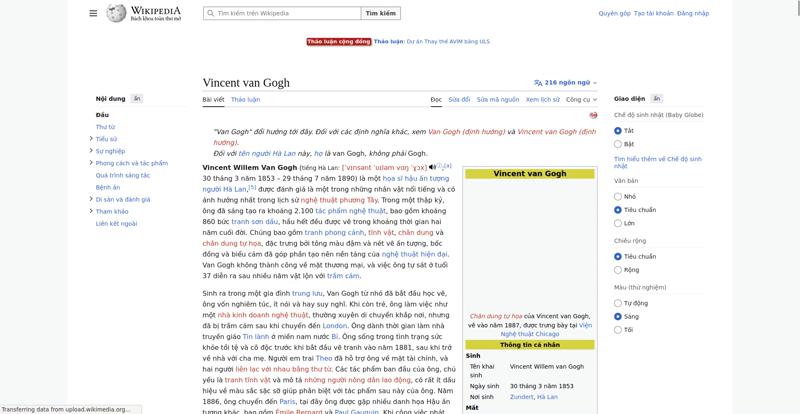 | Offenders: https://vi.wikipedia.org/wiki/Vincent_van_Gogh https://meta.wikimedia.org/w/index.php...a.org/w/index.php |
