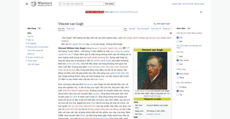 | Offenders: https://vi.wikipedia.org/wiki/Vincent_van_Gogh https://meta.wikimedia.org/w/index.php...a.org/w/index.php |
