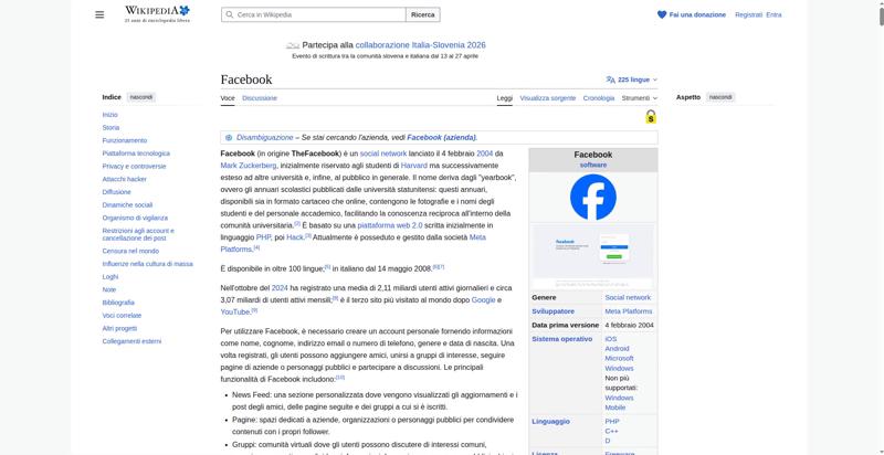 | <img alt="Schermata di esempio" resource="//it.wikipedia.org/wiki/File:Screen_of_Facebook_(2).PNG" src="//upload.wikimedia.org/wikipedia/commons/thumb/6/69/Screen_of_Facebook_%282%29.PNG/330px-Screen_of_Facebook_%282%29.PNG" decoding="async" data-file-width="1600" data-file-height="859" data-file-type="bitmap" height="140" width="260" srcset="//upload.wikimedia.org/wikipedia/commons/thumb/6/69/Screen_of_Facebook_%282%29.PNG/960px-Screen_of_Facebook_%282%29.PNG 2x" class="mw-file-element"> | |||||