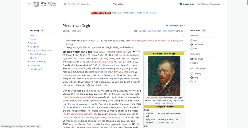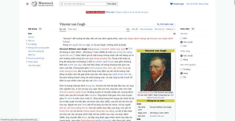 | Avoid slowing down the critical rendering path (avoidRenderBlocking) | The style https://vi.wikipedia.org/w/load.php?lang=vi&modules=ext.cite.parsoid.styles%7Cext.cite.styles%7Cext.phonos.icons%2Cstyles%7Cext.uls.interlanguage%7Cext.visualEditor.desktopArticleTarget.noscript%7Cext.wikimediaBadges%7Cext.wikimediamessages.styles%7Cjquery.makeCollapsible.styles%7Cmediawiki.page.gallery.styles%7Cmediawiki.skinning.content.parsoid%7Cskins.vector.icons%2Cstyles%7Cskins.vector.search.codex.styles%7Cwikibase.client.init&only=styles&skin=vector-2022 is larger than the magic number TCP window size 14.5 kB. Make the file smaller and the page will render faster. The page has 1 render blocking CSS request and 0 blocking JavaScript request inside of head. | 95 |
