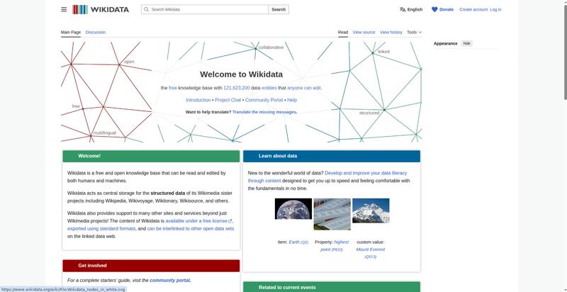 | <img src="//upload.wikimedia.org/wikipedia/commons/thumb/a/a3/Wikidata_nodes_in_white.svg/1920px-Wikidata_nodes_in_white.svg.png" decoding="async" width="1285" height="340" class="mw-file-element" srcset="//upload.wikimedia.org/wikipedia/commons/thumb/a/a3/Wikidata_nodes_in_white.svg/3840px-Wikidata_nodes_in_white.svg.png 2x" data-file-width="1285" data-file-height="340"> | |||||