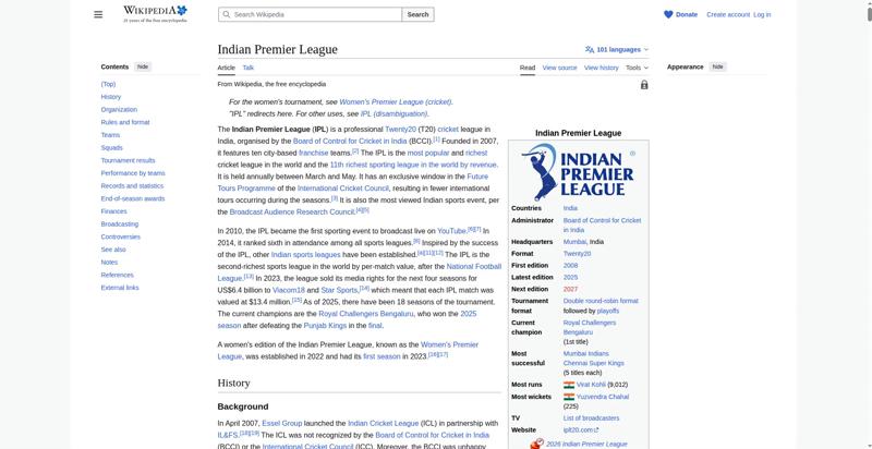 | Title | Indian Premier League - Wikipedia |