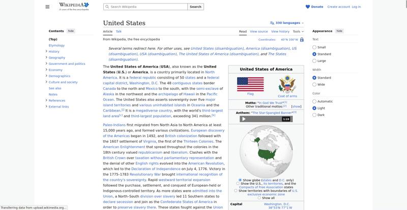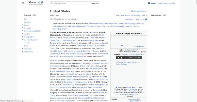 | Offenders: https://en.wikipedia.org/static/images/mobile/copyright/wikipedia-wordmark-en-25.svg https://en.wikipedia.org/static/images/mobile/copyright/wikipedia-tagline-en-25.svg https://upload.wikimedia.org/wikipedia/commons/thumb/9/96/Flag_of_the_United_Sta...ations%29.svg.png https://upload.wikimedia.org/wikipedia/commons/thumb/a/a4/Map_of_USA_with_state_...itory_names_2.png |