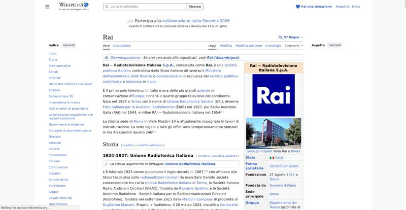 | Offenders: https://upload.wikimedia.org/wikipedia/commons/thumb/b/bc/Nota_disambigua.svg/20...isambigua.svg.png https://upload.wikimedia.org/wikipedia/commons/thumb/8/88/Logo_of_RAI_%282016%29...282016%29.svg.png https://upload.wikimedia.org/wikipedia/commons/thumb/5/5a/Rai_Roma_viale_mazzini...viale_mazzini.JPG https://upload.wikimedia.org/wikipedia/commons/thumb/0/03/Flag_of_Italy.svg/20px..._of_Italy.svg.png https://upload.wikimedia.org/wikipedia/commons/thumb/8/87/Magnifying_glass_icon_...icon_mgx2.svg.png https://upload.wikimedia.org/wikipedia/commons/thumb/f/fb/Yes_check.svg/20px-Yes_check.svg.png https://upload.wikimedia.org/wikipedia/commons/thumb/a/a2/X_mark.svg/20px-X_mark.svg.png https://upload.wikimedia.org/wikipedia/commons/thumb/b/b3/Rai_Sport_-_Logo_2022....Logo_2022.svg.png https://upload.wikimedia.org/wikipedia/commons/thumb/f/fd/Rai_Radio_2_-_Logo_201...Logo_2017.svg.png https://upload.wikimedia.org/wikipedia/commons/thumb/a/ab/Rai_Alto_Adige_-_Logo_...Logo_2018.svg.png https://upload.wikimedia.org/wikipedia/commons/thumb/c/c6/Rai_S%C3%BCdtirol_-_Lo...Logo_2019.svg.png https://upload.wikimedia.org/wikipedia/commons/thumb/8/8d/Rai_Vall%C3%A9e_d%27Ao...A9e_d%27Aoste.png https://upload.wikimedia.org/wikipedia/commons/thumb/b/ba/Flag_of_Germany.svg/20...f_Germany.svg.png https://upload.wikimedia.org/wikipedia/commons/thumb/9/92/Flag_of_Belgium_%28civ...8civil%29.svg.png https://upload.wikimedia.org/wikipedia/commons/thumb/8/83/Flag_of_the_United_Kin...%283-5%29.svg.png https://upload.wikimedia.org/wikipedia/commons/thumb/c/c3/Flag_of_France.svg/20p...of_France.svg.png https://upload.wikimedia.org/wikipedia/commons/thumb/f/f3/Flag_of_Russia.svg/20p...of_Russia.svg.png https://upload.wikimedia.org/wikipedia/commons/thumb/7/73/Blue_pencil.svg/20px-Blue_pencil.svg.png https://upload.wikimedia.org/wikipedia/commons/thumb/4/49/Flag_of_Ukraine.svg/20...f_Ukraine.svg.png https://upload.wikimedia.org/wikipedia/commons/thumb/c/c1/Flag_of_Hungary.svg/20...f_Hungary.svg.png https://upload.wikimedia.org/wikipedia/commons/thumb/a/ac/European_television_ic...sion_icon.svg.png https://upload.wikimedia.org/wikipedia/commons/thumb/7/77/Flag_of_Algeria.svg/20...f_Algeria.svg.png https://upload.wikimedia.org/wikipedia/commons/thumb/c/c0/Flag_of_Jordan.svg/20p...of_Jordan.svg.png https://upload.wikimedia.org/wikipedia/commons/thumb/5/59/Flag_of_Lebanon.svg/20...f_Lebanon.svg.png https://upload.wikimedia.org/wikipedia/commons/thumb/0/05/Flag_of_Libya.svg/20px..._of_Libya.svg.png https://upload.wikimedia.org/wikipedia/commons/thumb/2/2c/Flag_of_Morocco.svg/20...f_Morocco.svg.png https://upload.wikimedia.org/wikipedia/commons/thumb/c/ce/Flag_of_Tunisia.svg/20...f_Tunisia.svg.png https://upload.wikimedia.org/wikipedia/commons/thumb/c/ce/Flag_of_Catalonia.svg/...Catalonia.svg.png https://upload.wikimedia.org/wikipedia/commons/thumb/3/3c/Flag_of_the_Faroe_Isla...e_Islands.svg.png https://upload.wikimedia.org/wikipedia/commons/thumb/1/1f/Flag_of_Kosovo.svg/20p...of_Kosovo.svg.png https://upload.wikimedia.org/wikipedia/commons/thumb/6/65/Flag_of_Qatar.svg/20px..._of_Qatar.svg.png https://upload.wikimedia.org/wikipedia/commons/thumb/6/61/Flag_of_Yugoslavia_%28...6-1992%29.svg.png https://upload.wikimedia.org/wikipedia/commons/thumb/0/04/Flag_of_Libya_%281977%...932011%29.svg.png https://upload.wikimedia.org/wikipedia/commons/thumb/3/3e/Flag_of_Serbia_and_Mon...932006%29.svg.png https://upload.wikimedia.org/wikipedia/commons/thumb/b/b9/Flag_of_Australia.svg/...Australia.svg.png https://upload.wikimedia.org/wikipedia/commons/thumb/f/f9/Flag_of_Bangladesh.svg...angladesh.svg.png https://upload.wikimedia.org/wikipedia/commons/thumb/0/05/Flag_of_Brazil.svg/20p...of_Brazil.svg.png https://upload.wikimedia.org/wikipedia/commons/thumb/c/cf/Flag_of_Canada.svg/20p...of_Canada.svg.png https://upload.wikimedia.org/wikipedia/commons/thumb/7/78/Flag_of_Chile.svg/20px..._of_Chile.svg.png https://upload.wikimedia.org/wikipedia/commons/thumb/0/09/Flag_of_South_Korea.sv...uth_Korea.svg.png https://upload.wikimedia.org/wikipedia/commons/thumb/b/bd/Flag_of_Cuba.svg/20px-Flag_of_Cuba.svg.png https://upload.wikimedia.org/wikipedia/commons/thumb/9/9e/Flag_of_Japan.svg/20px..._of_Japan.svg.png https://upload.wikimedia.org/wikipedia/commons/thumb/5/5b/Flag_of_Hong_Kong.svg/...Hong_Kong.svg.png https://upload.wikimedia.org/wikipedia/commons/thumb/4/41/Flag_of_India.svg/20px..._of_India.svg.png https://upload.wikimedia.org/wikipedia/commons/thumb/c/ca/Flag_of_Iran.svg/20px-Flag_of_Iran.svg.png https://upload.wikimedia.org/wikipedia/commons/thumb/6/66/Flag_of_Malaysia.svg/2..._Malaysia.svg.png https://upload.wikimedia.org/wikipedia/commons/thumb/7/77/Flag_of_Mauritius.svg/...Mauritius.svg.png https://upload.wikimedia.org/wikipedia/commons/thumb/3/3e/Flag_of_New_Zealand.sv...w_Zealand.svg.png https://upload.wikimedia.org/wikipedia/commons/thumb/d/dd/Flag_of_Oman.svg/20px-Flag_of_Oman.svg.png https://upload.wikimedia.org/wikipedia/commons/thumb/5/54/Flag_of_Syria_%282025-...82025-%29.svg.png https://upload.wikimedia.org/wikipedia/commons/thumb/a/af/Flag_of_South_Africa.s...th_Africa.svg.png https://upload.wikimedia.org/wikipedia/commons/thumb/3/31/Eurovision_2026_heart_...t_-_Italy.svg.png https://upload.wikimedia.org/wikipedia/commons/thumb/a/a2/Factory.svg/40px-Factory.svg.png https://upload.wikimedia.org/wikipedia/commons/thumb/1/11/Newspaper_Cover.svg/40...per_Cover.svg.png https://upload.wikimedia.org/wikipedia/commons/thumb/0/03/Flag_of_Italy.svg/40px..._of_Italy.svg.png https://upload.wikimedia.org/wikipedia/commons/thumb/b/b6/TV-icon-2.svg/40px-TV-icon-2.svg.png https://upload.wikimedia.org/wikipedia/commons/thumb/4/4c/Logo_Slovenija-Italia_...alia_2026.svg.png https://upload.wikimedia.org/wikipedia/it/thumb/b/bd/Vittorio_Veltroni%2C_Lidia_...osio_nel_1939.jpg https://upload.wikimedia.org/wikipedia/commons/thumb/c/cc/Paolo_Monti_-_Servizio..._BEIC_6364368.jpg https://upload.wikimedia.org/wikipedia/commons/thumb/6/6c/Rai_Ro