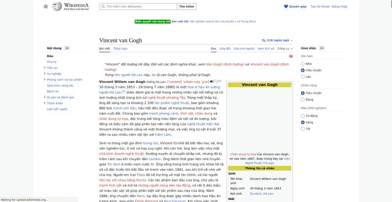 | Avoid slowing down the critical rendering path (avoidRenderBlocking) | The style https://vi.wikipedia.org/w/load.php?lang=vi&modules=ext.cite.parsoid.styles%7Cext.cite.styles%7Cext.phonos.icons%2Cstyles%7Cext.uls.interlanguage%7Cext.visualEditor.desktopArticleTarget.noscript%7Cext.wikimediaBadges%7Cext.wikimediamessages.styles%7Cjquery.makeCollapsible.styles%7Cmediawiki.page.gallery.styles%7Cmediawiki.skinning.content.parsoid%7Cskins.vector.icons%2Cstyles%7Cskins.vector.search.codex.styles%7Cwikibase.client.init&only=styles&skin=vector-2022 is larger than the magic number TCP window size 14.5 kB. Make the file smaller and the page will render faster. The page has 1 render blocking CSS request and 0 blocking JavaScript request inside of head. | 95 |