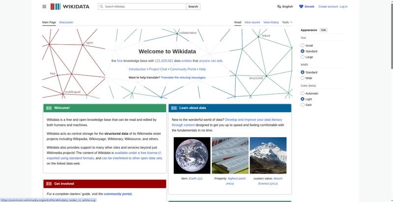 | <img src="//upload.wikimedia.org/wikipedia/commons/thumb/a/a3/Wikidata_nodes_in_white.svg/1920px-Wikidata_nodes_in_white.svg.png" decoding="async" width="1285" height="340" class="mw-file-element" srcset="//upload.wikimedia.org/wikipedia/commons/thumb/a/a3/Wikidata_nodes_in_white.svg/3840px-Wikidata_nodes_in_white.svg.png 2x" data-file-width="1285" data-file-height="340"> | |||||
