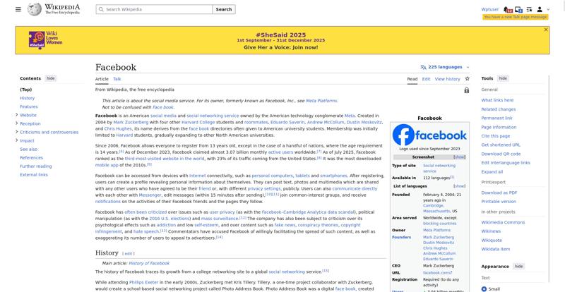 <img alt="This is a screenshot of Mark Zuckerburg's Facebook profile. It includes his profile photo and a header photo of llamas." src="//upload.wikimedia.org/wikipedia/en/6/64/Facebook_user_page.png" decoding="async" width="300" height="439" class="mw-file-element" data-file-width="261" data-file-height="382">