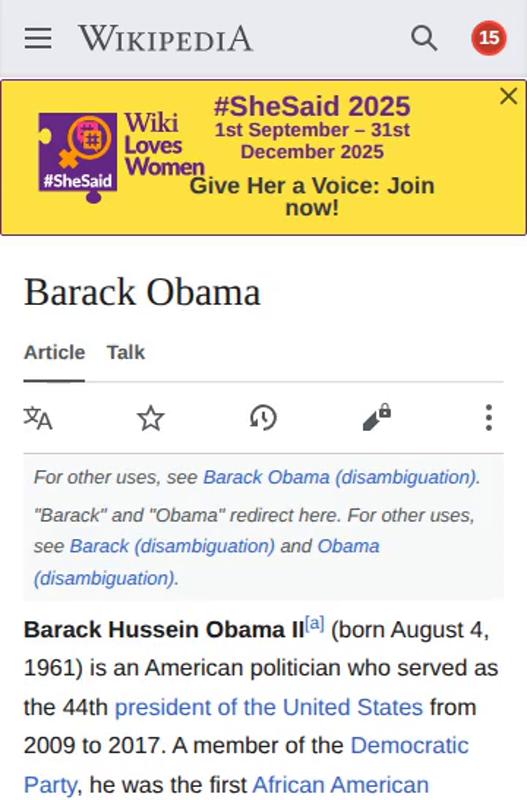 Test mobile as a logged in userLogin the user with an empty browser cache, then visit Obama and Facebook