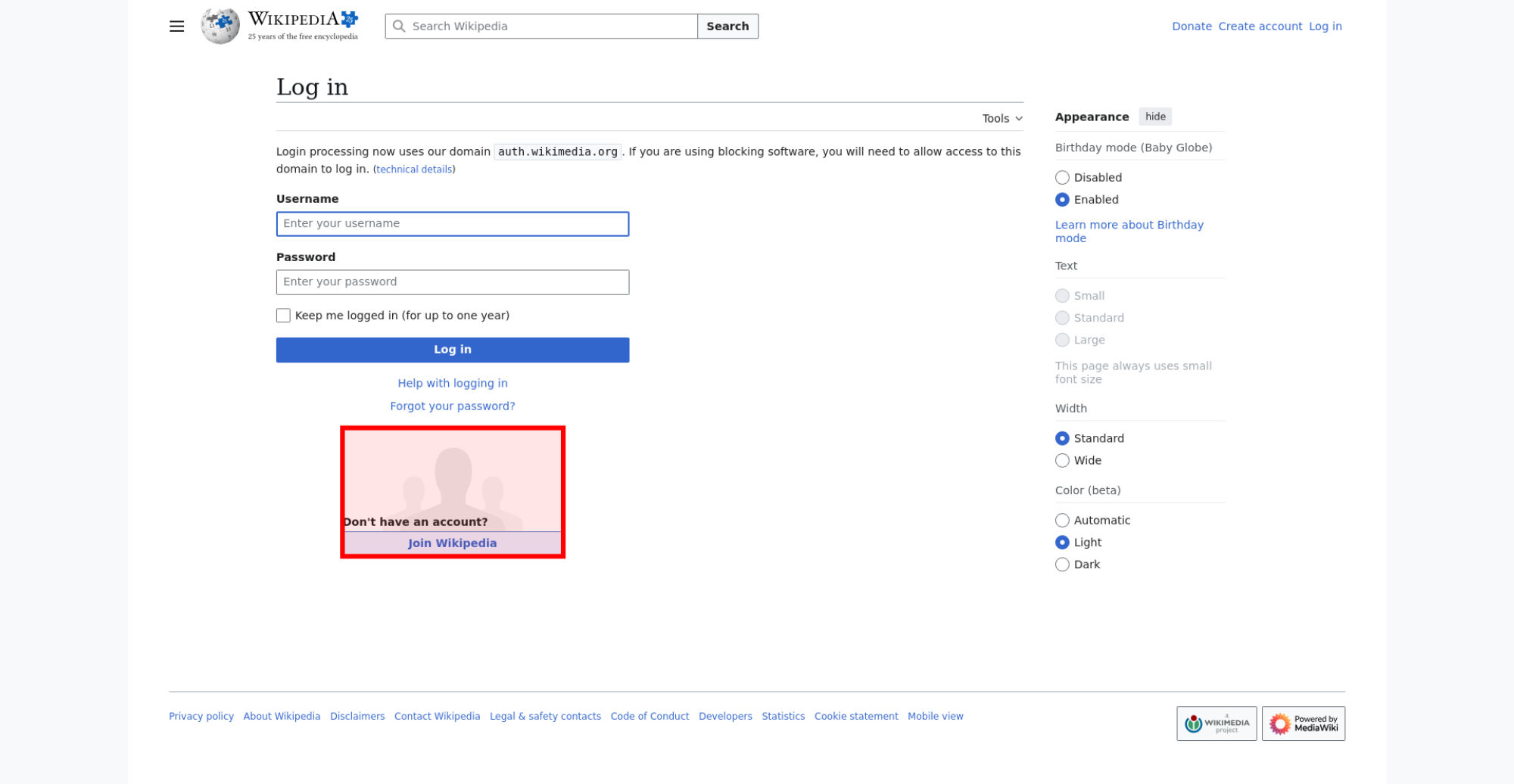 | Offenders: https://auth.wikimedia.org/static/images/icons/enwiki-25.svg https://auth.wikimedia.org/static/images/mobile/copyright/wikipedia-wordmark-en-25.svg https://auth.wikimedia.org/static/images/mobile/copyright/wikipedia-tagline-en-25.svg https://auth.wikimedia.org/static/images/footer/wikimedia-button.svg https://auth.wikimedia.org/enwiki/w/resources/assets/poweredby_mediawiki.svg |