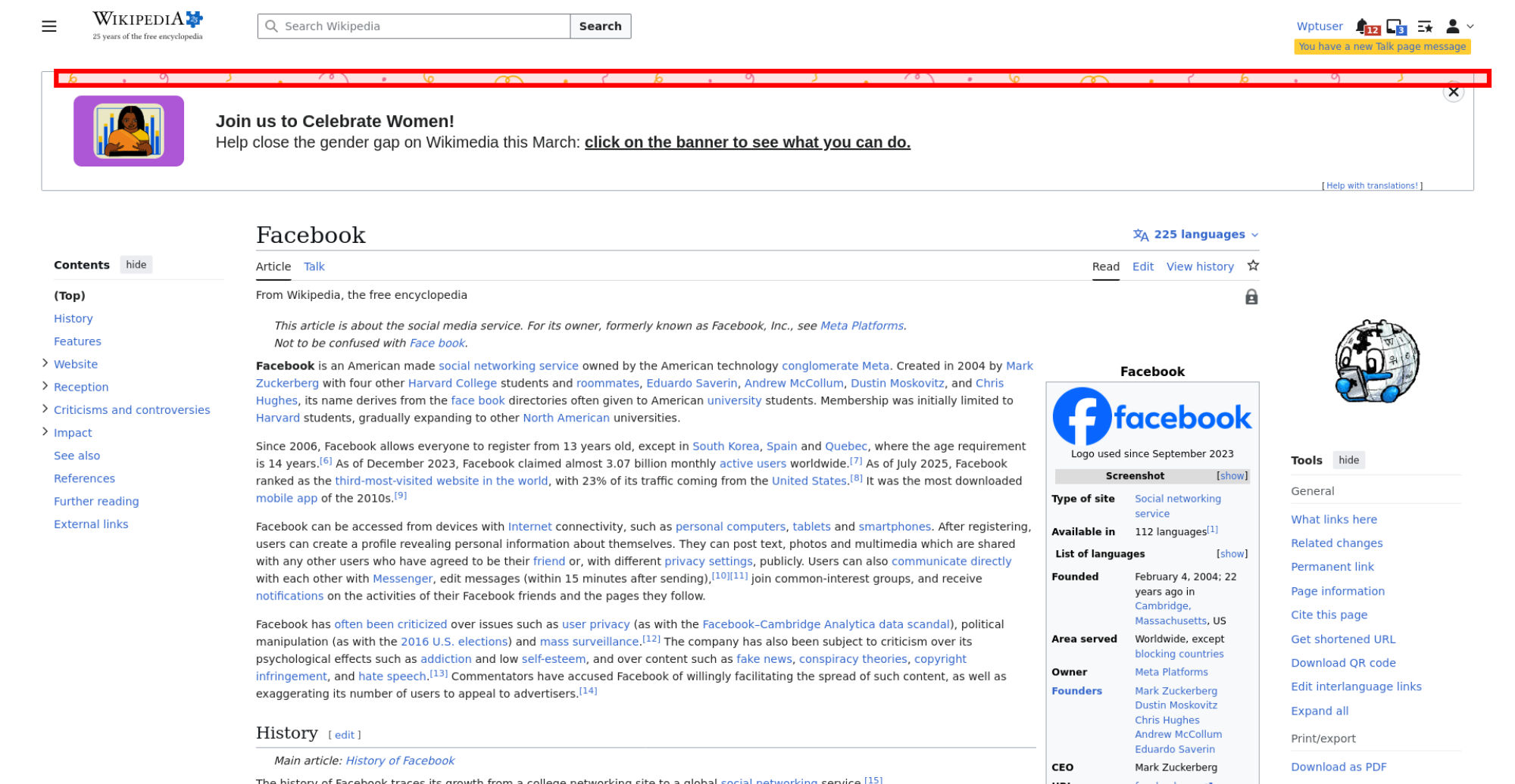 <img alt="This is a screenshot of Mark Zuckerburg's Facebook profile. It includes his profile photo and a header photo of llamas." src="//upload.wikimedia.org/wikipedia/en/6/64/Facebook_user_page.png" decoding="async" width="300" height="439" class="mw-file-element" data-file-width="261" data-file-height="382">
