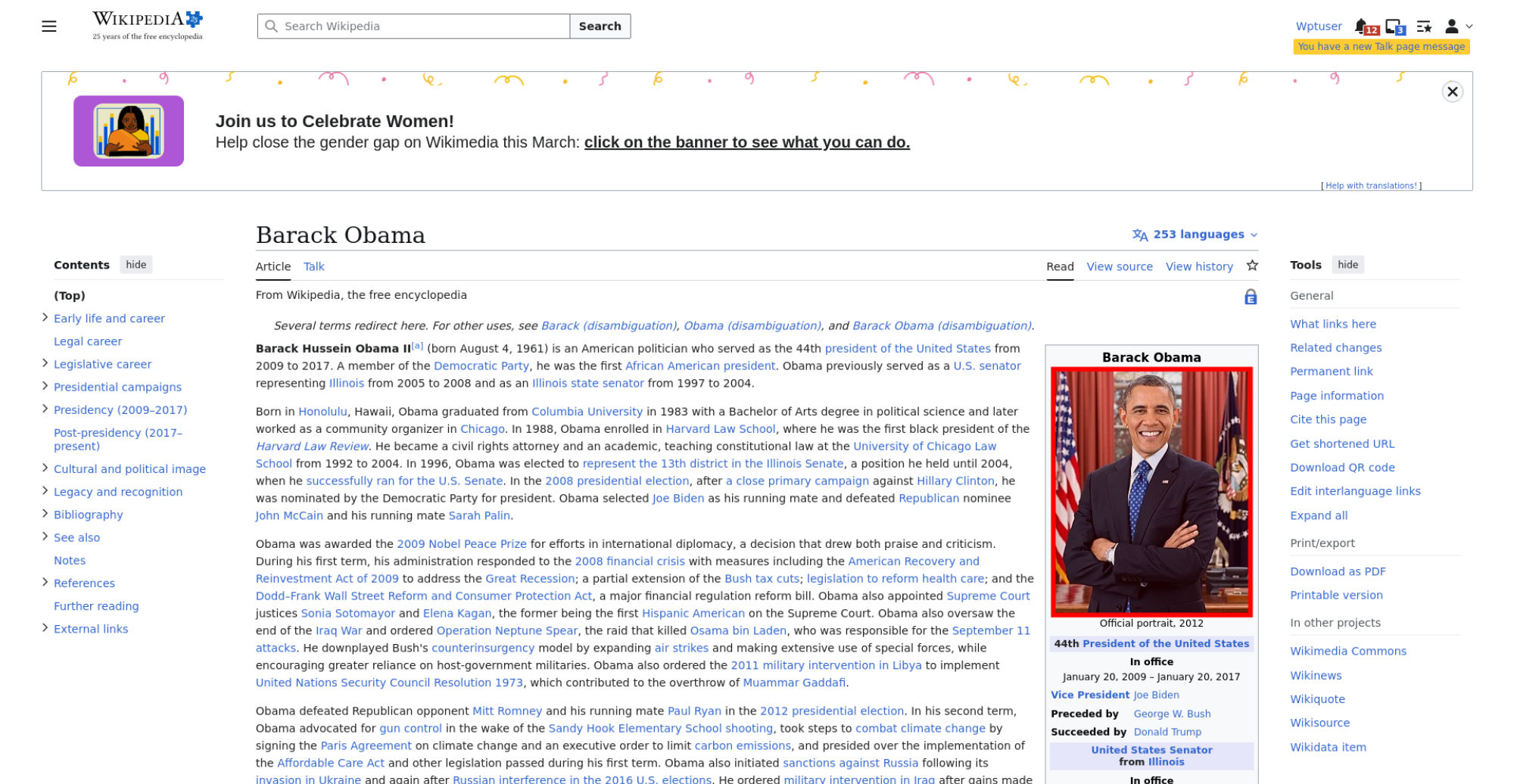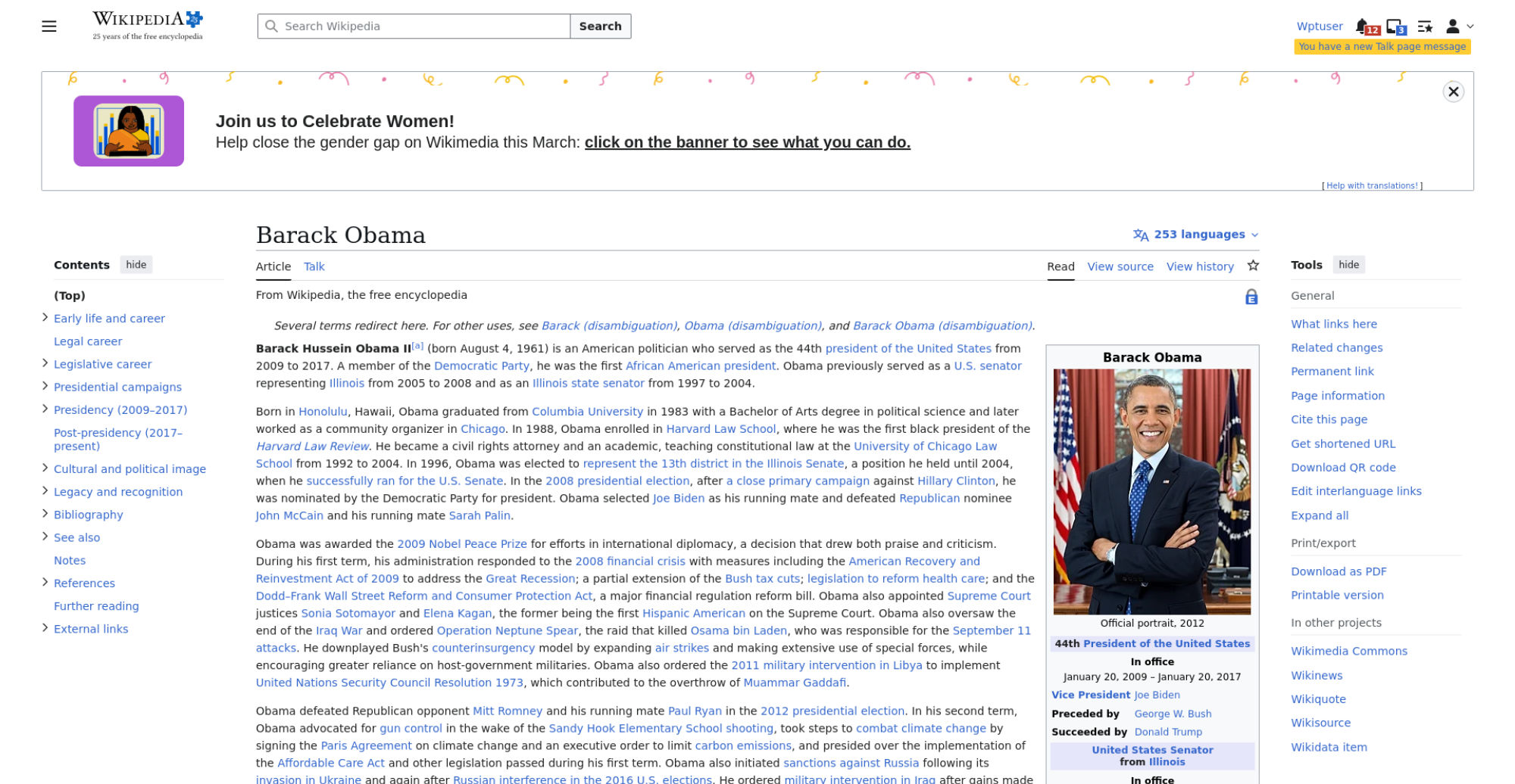 | Offenders: https://en.wikipedia.org/static/images/icons/enwiki-25.svg https://en.wikipedia.org/static/images/mobile/copyright/wikipedia-tagline-en-25.svg https://upload.wikimedia.org/wikipedia/en/thumb/8/8c/Extended-protection-shackle...n-shackle.svg.png https://upload.wikimedia.org/wikipedia/commons/thumb/8/8d/President_Barack_Obama..._Barack_Obama.jpg https://upload.wikimedia.org/wikipedia/commons/thumb/1/11/Barack_Obama_signature...signature.svg.png https://upload.wikimedia.org/wikipedia/commons/thumb/f/f9/Obama_portrait_crop.jp...portrait_crop.jpg https://upload.wikimedia.org/wikipedia/commons/thumb/3/36/Seal_of_the_President_...ed_States.svg.png https://upload.wikimedia.org/wikipedia/en/thumb/3/33/Ann_Dunham_with_father_and_..._and_children.jpg https://upload.wikimedia.org/wikipedia/commons/thumb/9/99/Barry_Soetoro_school_r...school_record.jpg https://upload.wikimedia.org/wikipedia/commons/thumb/1/1b/Nuvola_apps_kaboodle.s..._kaboodle.svg.png https://upload.wikimedia.org/wikipedia/commons/thumb/2/26/Obama_family_portrait_...he_Green_Room.jpg https://upload.wikimedia.org/wikipedia/commons/thumb/3/3d/Obamas_at_church_on_In...tion_Day_2013.jpg https://upload.wikimedia.org/wikipedia/commons/thumb/b/b6/Obamamiltondavis1.jpg/...amiltondavis1.jpg https://upload.wikimedia.org/wikipedia/commons/thumb/a/a4/Chicago%2C_November_2%...5471954323%29.jpg https://upload.wikimedia.org/wikipedia/commons/thumb/f/f1/BarackObamaportrait.jp...Obamaportrait.jpg https://upload.wikimedia.org/wikipedia/commons/thumb/2/24/ElectoralCollege2008.s...llege2008.svg.png https://upload.wikimedia.org/wikipedia/commons/thumb/4/44/ElectoralCollege2012.s...llege2012.svg.png https://upload.wikimedia.org/wikipedia/commons/thumb/a/a4/Modern_Liberalism_Flag...American_Flag.png https://en.wikipedia.org/w/load.php...ia.org/w/load.php https://en.wikipedia.org/w/load.php...ia.org/w/load.php https://en.wikipedia.org/w/load.php...ia.org/w/load.php https://en.wikipedia.org/w/load.php...ia.org/w/load.php https://en.wikipedia.org/w/load.php...ia.org/w/load.php https://en.wikipedia.org/w/load.php...ia.org/w/load.php https://en.wikipedia.org/w/load.php...ia.org/w/load.php https://en.wikipedia.org/w/load.php...ia.org/w/load.php https://en.wikipedia.org/w/load.php...ia.org/w/load.php https://en.wikipedia.org/w/load.php...ia.org/w/load.php https://en.wikipedia.org/w/load.php...ia.org/w/load.php https://en.wikipedia.org/w/load.php...ia.org/w/load.php https://en.wikipedia.org/w/load.php...ia.org/w/load.php https://upload.wikimedia.org/wikipedia/commons/thumb/f/fa/Wikiquote-logo.svg/40p...uote-logo.svg.png https://upload.wikimedia.org/wikipedia/commons/thumb/4/4c/Wikisource-logo.svg/40...urce-logo.svg.png https://upload.wikimedia.org/wikipedia/commons/thumb/4/4b/Michelle_Obama_2013_of...cial_portrait.jpg https://meta.wikimedia.org/w/index.php...a.org/w/index.php https://en.wikipedia.org/w/load.php...ia.org/w/load.php https://en.wikipedia.org/w/load.php...ia.org/w/load.php https://en.wikipedia.org/w/load.php...ia.org/w/load.php https://en.wikipedia.org/w/load.php...ia.org/w/load.php https://en.wikipedia.org/w/load.php...ia.org/w/load.php https://upload.wikimedia.org/wikipedia/commons/1/18/WP20Symbols_WIKIDATA.svg https://upload.wikimedia.org/wikipedia/donate/0/08/Wikipedia20_banner_backgroundtop2.svg https://upload.wikimedia.org/wikipedia/donate/c/c9/Wikipedia20_banner_backgroundbottom2.svg |