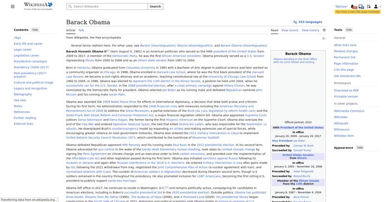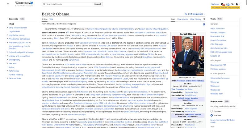 | Offenders: https://en.wikipedia.org/static/images/icons/enwiki-25.svg https://en.wikipedia.org/static/images/mobile/copyright/wikipedia-tagline-en-25.svg https://upload.wikimedia.org/wikipedia/en/thumb/8/8c/Extended-protection-shackle...n-shackle.svg.png https://upload.wikimedia.org/wikipedia/commons/thumb/8/8d/President_Barack_Obama..._Barack_Obama.jpg https://upload.wikimedia.org/wikipedia/commons/thumb/1/11/Barack_Obama_signature...signature.svg.png https://upload.wikimedia.org/wikipedia/commons/thumb/3/3d/Obamas_at_church_on_In...tion_Day_2013.jpg https://upload.wikimedia.org/wikipedia/commons/thumb/b/b6/Obamamiltondavis1.jpg/...amiltondavis1.jpg https://upload.wikimedia.org/wikipedia/commons/thumb/a/a4/Chicago%2C_November_2%...5471954323%29.jpg https://upload.wikimedia.org/wikipedia/commons/thumb/f/f9/Obama_portrait_crop.jp...portrait_crop.jpg https://upload.wikimedia.org/wikipedia/commons/thumb/3/36/Seal_of_the_President_...ed_States.svg.png https://upload.wikimedia.org/wikipedia/en/thumb/3/33/Ann_Dunham_with_father_and_..._and_children.jpg https://upload.wikimedia.org/wikipedia/commons/thumb/9/99/Barry_Soetoro_school_r...school_record.jpg https://upload.wikimedia.org/wikipedia/commons/thumb/1/1b/Nuvola_apps_kaboodle.s..._kaboodle.svg.png https://upload.wikimedia.org/wikipedia/commons/thumb/2/26/Obama_family_portrait_...he_Green_Room.jpg https://upload.wikimedia.org/wikipedia/commons/thumb/f/f1/BarackObamaportrait.jp...Obamaportrait.jpg https://upload.wikimedia.org/wikipedia/commons/thumb/2/24/ElectoralCollege2008.s...llege2008.svg.png https://upload.wikimedia.org/wikipedia/commons/thumb/4/44/ElectoralCollege2012.s...llege2012.svg.png https://upload.wikimedia.org/wikipedia/commons/thumb/a/a4/Modern_Liberalism_Flag...American_Flag.png https://upload.wikimedia.org/wikipedia/commons/thumb/1/1b/Yellow_flag_waving.svg...ag_waving.svg.png https://upload.wikimedia.org/wikipedia/en/thumb/a/a4/Flag_of_the_United_States.s...ed_States.svg.png https://upload.wikimedia.org/wikipedia/commons/thumb/d/d7/US_President_Barack_Ob...e_-_2009Jan20.jpg https://upload.wikimedia.org/wikipedia/commons/thumb/e/e9/Official_portrait_of_B..._Barack_Obama.jpg https://upload.wikimedia.org/wikipedia/commons/thumb/3/32/Barack_Obama_addresses...ss_2009-02-24.jpg https://upload.wikimedia.org/wikipedia/commons/thumb/4/4b/Barack_Obama_visiting_...rora_shooting.jpg https://upload.wikimedia.org/wikipedia/commons/thumb/f/fc/U.S._Total_Deficits_vs...ses_2001-2010.png https://upload.wikimedia.org/wikipedia/commons/thumb/2/25/US_Employment_Statisti...tatistics.svg.png https://upload.wikimedia.org/wikipedia/commons/thumb/9/9f/Job_Growth_by_U.S._Pre...resident_-_v1.png https://upload.wikimedia.org/wikipedia/commons/thumb/6/63/Obama-venice-la.jpg/25...ama-venice-la.jpg https://upload.wikimedia.org/wikipedia/commons/thumb/7/79/PPACA_Premium_Chart.jp...Premium_Chart.jpg https://upload.wikimedia.org/wikipedia/commons/thumb/8/84/Percentage_of_Individu...%2C_1963-2015.png https://upload.wikimedia.org/wikipedia/commons/thumb/9/99/P06409PS-0571_%2835946...3594694537%29.jpg https://upload.wikimedia.org/wikipedia/commons/thumb/6/6f/Barack_Obama%27s_trip_..._2016_%289%29.jpg https://upload.wikimedia.org/wikipedia/commons/thumb/7/70/Barack_Obama_with_Afgh...and_Joe_Biden.jpg https://upload.wikimedia.org/wikipedia/commons/thumb/a/ac/Obama_and_Biden_await_..._on_bin_Laden.jpg https://upload.wikimedia.org/wikipedia/commons/thumb/f/f6/Handshake_between_the_...C3%BAl_Castro.jpg https://upload.wikimedia.org/wikipedia/commons/thumb/1/1b/Barack_Obama_welcomes_...e_Oval_Office.jpg https://upload.wikimedia.org/wikipedia/commons/thumb/1/17/Barack_Obama_talks_wit...8637772147%29.jpg https://upload.wikimedia.org/wikipedia/commons/thumb/e/eb/Vladimir_Putin_and_Bar...5-09-29%29_01.jpg https://upload.wikimedia.org/wikipedia/commons/thumb/9/96/Obama_Macri_October_20..._October_2017.jpg https://upload.wikimedia.org/wikipedia/commons/thumb/1/15/P20220405AS-1082_%2852...2067439422%29.jpg https://upload.wikimedia.org/wikipedia/commons/thumb/f/f6/20260306_Chicago%2C_Es...-_Juan_Cano17.jpg https://upload.wikimedia.org/wikipedia/commons/thumb/b/b3/NewDemCoalition-logo.j...oalition-logo.jpg https://upload.wikimedia.org/wikipedia/en/thumb/0/01/A_coloured_voting_box.svg/2...oting_box.svg.png https://upload.wikimedia.org/wikipedia/commons/thumb/c/c0/Gallup_Poll-Approval_R...ack_Obama.svg.png https://upload.wikimedia.org/wikipedia/en/thumb/6/69/P_vip.svg/40px-P_vip.svg.png https://upload.wikimedia.org/wikipedia/en/thumb/a/a4/Flag_of_the_United_States.s...ed_States.svg.png https://upload.wikimedia.org/wikipedia/commons/thumb/e/ef/Flag_of_Hawaii.svg/40p...of_Hawaii.svg.png https://upload.wikimedia.org/wikipedia/commons/thumb/9/9b/Flag_of_Chicago%2C_Ill..._Illinois.svg.png https://upload.wikimedia.org/wikipedia/commons/thumb/0/01/Flag_of_Illinois.svg/4..._Illinois.svg.png https://upload.wikimedia.org/wikipedia/commons/thumb/1/17/Balance%2C_by_David.sv..._by_David.svg.png https://upload.wikimedia.org/wikipedia/en/thumb/0/01/A_coloured_voting_box.svg/4...oting_box.svg.png https://upload.wikimedia.org/wikipedia/commons/thumb/c/c1/Blue_iPod_Nano.jpg/20px-Blue_iPod_Nano.jpg https://upload.wikimedia.org/wikipedia/commons/thumb/9/9d/IPhone5white.png/20px-IPhone5white.png https://en.wikipedia.org/w/load.php...ia.org/w/load.php https://en.wikipedia.org/w/load.php...ia.org/w/load.php https://en.wikipedia.org/w/load.php...ia.org/w/load.php https://en.wikipedia.org/w/load.php...ia.org/w/load.php https://en.wikipedia.org/w/load.php...ia.org/w/load.php https://en.wikipedia.org/w/load.php...ia.org/w/load.php https://en.wikipedia.org/w/load.php...ia.org/w/load.php https://en.wikipedia.org/w/load.php...ia.org/w/load.php https://en.wikipedia.org/w/load.php...ia.org/w/load.php https://en.wikipedia.org/w/load.php...ia.org/w/load.php https://en.wikipedia.org/w/load.php...ia.org/w/load.php https://en.wikipedia.org/w/load.php...ia.org/w/load.php https://en.wikipedia.org/w/load.php...ia.org
