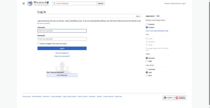 | Title | Log in - Wikipedia |
