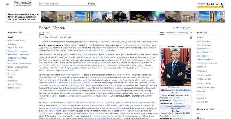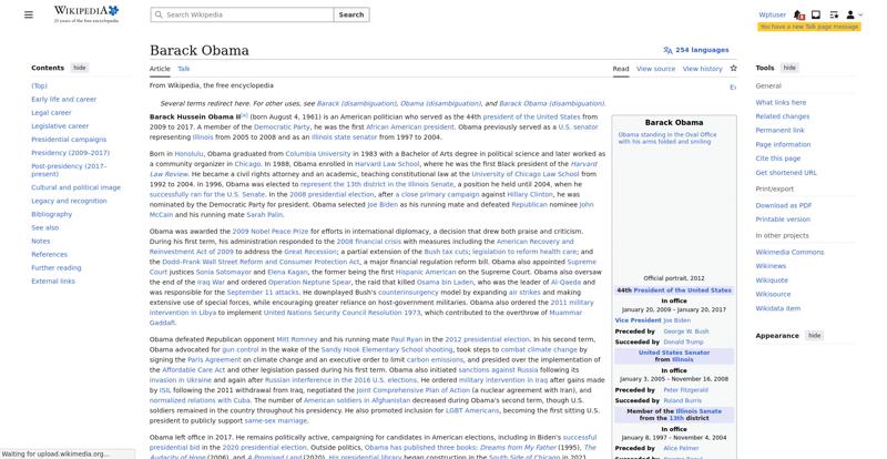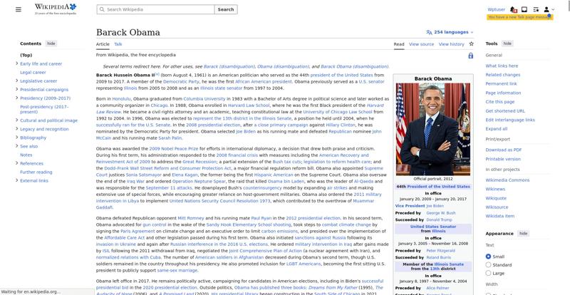 | Offenders: https://en.wikipedia.org/static/images/icons/enwiki-25.svg https://en.wikipedia.org/static/images/mobile/copyright/wikipedia-tagline-en-25.svg https://upload.wikimedia.org/wikipedia/en/thumb/8/8c/Extended-protection-shackle...n-shackle.svg.png https://upload.wikimedia.org/wikipedia/commons/thumb/8/8d/President_Barack_Obama..._Barack_Obama.jpg https://upload.wikimedia.org/wikipedia/commons/thumb/1/11/Barack_Obama_signature...signature.svg.png https://upload.wikimedia.org/wikipedia/commons/thumb/3/3d/Obamas_at_church_on_In...tion_Day_2013.jpg https://upload.wikimedia.org/wikipedia/commons/thumb/b/b6/Obamamiltondavis1.jpg/...amiltondavis1.jpg https://upload.wikimedia.org/wikipedia/commons/thumb/a/a4/Chicago%2C_November_2%...5471954323%29.jpg https://upload.wikimedia.org/wikipedia/commons/thumb/f/f5/Poster-sized_portrait_..._Barack_Obama.jpg https://upload.wikimedia.org/wikipedia/commons/thumb/3/36/Seal_of_the_President_...ed_States.svg.png https://upload.wikimedia.org/wikipedia/en/thumb/3/33/Ann_Dunham_with_father_and_..._and_children.jpg https://upload.wikimedia.org/wikipedia/commons/thumb/9/99/Barry_Soetoro_school_r...school_record.jpg https://upload.wikimedia.org/wikipedia/commons/thumb/1/1b/Nuvola_apps_kaboodle.s..._kaboodle.svg.png https://upload.wikimedia.org/wikipedia/commons/thumb/2/26/Obama_family_portrait_...he_Green_Room.jpg https://upload.wikimedia.org/wikipedia/commons/thumb/f/f1/BarackObamaportrait.jp...Obamaportrait.jpg https://upload.wikimedia.org/wikipedia/commons/thumb/2/24/ElectoralCollege2008.s...llege2008.svg.png https://upload.wikimedia.org/wikipedia/commons/thumb/4/44/ElectoralCollege2012.s...llege2012.svg.png https://upload.wikimedia.org/wikipedia/commons/thumb/a/a4/Modern_Liberalism_Flag...American_Flag.png https://upload.wikimedia.org/wikipedia/commons/thumb/1/1b/Yellow_flag_waving.svg...ag_waving.svg.png https://upload.wikimedia.org/wikipedia/en/thumb/a/a4/Flag_of_the_United_States.s...ed_States.svg.png https://upload.wikimedia.org/wikipedia/commons/thumb/d/d7/US_President_Barack_Ob...e_-_2009Jan20.jpg https://upload.wikimedia.org/wikipedia/commons/thumb/e/e9/Official_portrait_of_B..._Barack_Obama.jpg https://upload.wikimedia.org/wikipedia/commons/thumb/3/32/Barack_Obama_addresses...ss_2009-02-24.jpg https://upload.wikimedia.org/wikipedia/commons/thumb/4/4b/Barack_Obama_visiting_...rora_shooting.jpg https://upload.wikimedia.org/wikipedia/commons/thumb/f/fc/U.S._Total_Deficits_vs...ses_2001-2010.png https://upload.wikimedia.org/wikipedia/commons/thumb/2/25/US_Employment_Statisti...tatistics.svg.png https://upload.wikimedia.org/wikipedia/commons/thumb/9/9f/Job_Growth_by_U.S._Pre...resident_-_v1.png https://upload.wikimedia.org/wikipedia/commons/thumb/6/63/Obama-venice-la.jpg/25...ama-venice-la.jpg https://upload.wikimedia.org/wikipedia/commons/thumb/7/79/PPACA_Premium_Chart.jp...Premium_Chart.jpg https://upload.wikimedia.org/wikipedia/commons/thumb/8/84/Percentage_of_Individu...%2C_1963-2015.png https://upload.wikimedia.org/wikipedia/commons/thumb/9/99/P06409PS-0571_%2835946...3594694537%29.jpg https://upload.wikimedia.org/wikipedia/commons/thumb/6/6f/Barack_Obama%27s_trip_..._2016_%289%29.jpg https://upload.wikimedia.org/wikipedia/commons/thumb/7/70/Barack_Obama_with_Afgh...and_Joe_Biden.jpg https://upload.wikimedia.org/wikipedia/commons/thumb/a/ac/Obama_and_Biden_await_..._on_bin_Laden.jpg https://upload.wikimedia.org/wikipedia/commons/thumb/f/f6/Handshake_between_the_...C3%BAl_Castro.jpg https://upload.wikimedia.org/wikipedia/commons/thumb/1/1b/Barack_Obama_welcomes_...e_Oval_Office.jpg https://upload.wikimedia.org/wikipedia/commons/thumb/1/17/Barack_Obama_talks_wit...8637772147%29.jpg https://upload.wikimedia.org/wikipedia/commons/thumb/e/eb/Vladimir_Putin_and_Bar...5-09-29%29_01.jpg https://upload.wikimedia.org/wikipedia/commons/thumb/9/96/Obama_Macri_October_20..._October_2017.jpg https://upload.wikimedia.org/wikipedia/commons/thumb/1/15/P20220405AS-1082_%2852...2067439422%29.jpg https://upload.wikimedia.org/wikipedia/commons/thumb/f/f6/20260306_Chicago%2C_Es...-_Juan_Cano17.jpg https://upload.wikimedia.org/wikipedia/commons/thumb/b/b3/NewDemCoalition-logo.j...oalition-logo.jpg https://upload.wikimedia.org/wikipedia/en/thumb/0/01/A_coloured_voting_box.svg/2...oting_box.svg.png https://upload.wikimedia.org/wikipedia/commons/thumb/c/c0/Gallup_Poll-Approval_R...ack_Obama.svg.png https://upload.wikimedia.org/wikipedia/en/thumb/6/69/P_vip.svg/40px-P_vip.svg.png https://upload.wikimedia.org/wikipedia/en/thumb/a/a4/Flag_of_the_United_States.s...ed_States.svg.png https://upload.wikimedia.org/wikipedia/commons/thumb/e/ef/Flag_of_Hawaii.svg/40p...of_Hawaii.svg.png https://upload.wikimedia.org/wikipedia/commons/thumb/9/9b/Flag_of_Chicago%2C_Ill..._Illinois.svg.png https://upload.wikimedia.org/wikipedia/commons/thumb/0/01/Flag_of_Illinois.svg/4..._Illinois.svg.png https://upload.wikimedia.org/wikipedia/commons/thumb/1/17/Balance%2C_by_David.sv..._by_David.svg.png https://upload.wikimedia.org/wikipedia/en/thumb/0/01/A_coloured_voting_box.svg/4...oting_box.svg.png https://upload.wikimedia.org/wikipedia/commons/thumb/c/c1/Blue_iPod_Nano.jpg/20px-Blue_iPod_Nano.jpg https://upload.wikimedia.org/wikipedia/commons/thumb/9/9d/IPhone5white.png/20px-IPhone5white.png https://en.wikipedia.org/w/load.php...ia.org/w/load.php https://en.wikipedia.org/w/load.php...ia.org/w/load.php https://en.wikipedia.org/w/load.php...ia.org/w/load.php https://en.wikipedia.org/w/load.php...ia.org/w/load.php https://en.wikipedia.org/w/load.php...ia.org/w/load.php https://en.wikipedia.org/w/load.php...ia.org/w/load.php https://en.wikipedia.org/w/load.php...ia.org/w/load.php https://en.wikipedia.org/w/load.php...ia.org/w/load.php https://en.wikipedia.org/w/load.php...ia.org/w/load.php https://en.wikipedia.org/w/load.php...ia.org/w/load.php https://en.wikipedia.org/w/load.php...ia.org/w/load.php https://en.wikipedia.org/w/load.php...ia.org/w/load.php https://en.wikipedia.org/w/load.php...ia.org