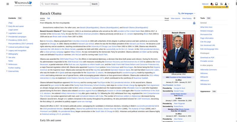 | Offenders: https://upload.wikimedia.org/wikipedia/en/thumb/8/8c/Extended-protection-shackle...n-shackle.svg.png https://upload.wikimedia.org/wikipedia/commons/thumb/8/8d/President_Barack_Obama..._Barack_Obama.jpg https://upload.wikimedia.org/wikipedia/commons/thumb/1/11/Barack_Obama_signature...signature.svg.png https://upload.wikimedia.org/wikipedia/commons/thumb/f/f5/Poster-sized_portrait_..._Barack_Obama.jpg https://upload.wikimedia.org/wikipedia/commons/thumb/3/36/Seal_of_the_President_...ed_States.svg.png https://upload.wikimedia.org/wikipedia/en/thumb/3/33/Ann_Dunham_with_father_and_..._and_children.jpg https://upload.wikimedia.org/wikipedia/commons/thumb/9/99/Barry_Soetoro_school_r...school_record.jpg https://upload.wikimedia.org/wikipedia/commons/thumb/1/1b/Nuvola_apps_kaboodle.s..._kaboodle.svg.png https://upload.wikimedia.org/wikipedia/commons/thumb/2/26/Obama_family_portrait_...he_Green_Room.jpg https://upload.wikimedia.org/wikipedia/commons/thumb/3/3d/Obamas_at_church_on_In...tion_Day_2013.jpg https://upload.wikimedia.org/wikipedia/commons/thumb/b/b6/Obamamiltondavis1.jpg/...amiltondavis1.jpg https://upload.wikimedia.org/wikipedia/commons/thumb/a/a4/Chicago%2C_November_2%...5471954323%29.jpg https://upload.wikimedia.org/wikipedia/commons/thumb/f/f1/BarackObamaportrait.jp...Obamaportrait.jpg https://upload.wikimedia.org/wikipedia/commons/thumb/2/24/ElectoralCollege2008.s...llege2008.svg.png https://upload.wikimedia.org/wikipedia/commons/thumb/4/44/ElectoralCollege2012.s...llege2012.svg.png https://upload.wikimedia.org/wikipedia/commons/thumb/a/a4/Modern_Liberalism_Flag...American_Flag.png https://upload.wikimedia.org/wikipedia/commons/thumb/1/1b/Yellow_flag_waving.svg...ag_waving.svg.png https://upload.wikimedia.org/wikipedia/en/thumb/a/a4/Flag_of_the_United_States.s...ed_States.svg.png https://upload.wikimedia.org/wikipedia/commons/thumb/d/d7/US_President_Barack_Ob...e_-_2009Jan20.jpg https://upload.wikimedia.org/wikipedia/commons/thumb/e/e9/Official_portrait_of_B..._Barack_Obama.jpg https://upload.wikimedia.org/wikipedia/commons/thumb/3/32/Barack_Obama_addresses...ss_2009-02-24.jpg https://upload.wikimedia.org/wikipedia/commons/thumb/4/4b/Barack_Obama_visiting_...rora_shooting.jpg https://upload.wikimedia.org/wikipedia/commons/thumb/f/fc/U.S._Total_Deficits_vs...ses_2001-2010.png https://upload.wikimedia.org/wikipedia/commons/thumb/2/25/US_Employment_Statisti...tatistics.svg.png https://upload.wikimedia.org/wikipedia/commons/thumb/9/9f/Job_Growth_by_U.S._Pre...resident_-_v1.png https://upload.wikimedia.org/wikipedia/commons/thumb/6/63/Obama-venice-la.jpg/25...ama-venice-la.jpg https://upload.wikimedia.org/wikipedia/commons/thumb/7/79/PPACA_Premium_Chart.jp...Premium_Chart.jpg https://upload.wikimedia.org/wikipedia/commons/thumb/8/84/Percentage_of_Individu...%2C_1963-2015.png https://upload.wikimedia.org/wikipedia/commons/thumb/9/99/P06409PS-0571_%2835946...3594694537%29.jpg https://upload.wikimedia.org/wikipedia/commons/thumb/6/6f/Barack_Obama%27s_trip_..._2016_%289%29.jpg https://upload.wikimedia.org/wikipedia/commons/thumb/7/70/Barack_Obama_with_Afgh...and_Joe_Biden.jpg https://upload.wikimedia.org/wikipedia/commons/thumb/a/ac/Obama_and_Biden_await_..._on_bin_Laden.jpg https://upload.wikimedia.org/wikipedia/commons/thumb/f/f6/Handshake_between_the_...C3%BAl_Castro.jpg https://upload.wikimedia.org/wikipedia/commons/thumb/1/1b/Barack_Obama_welcomes_...e_Oval_Office.jpg https://upload.wikimedia.org/wikipedia/commons/thumb/1/17/Barack_Obama_talks_wit...8637772147%29.jpg https://upload.wikimedia.org/wikipedia/commons/thumb/e/eb/Vladimir_Putin_and_Bar...5-09-29%29_01.jpg https://upload.wikimedia.org/wikipedia/commons/thumb/9/96/Obama_Macri_October_20..._October_2017.jpg https://upload.wikimedia.org/wikipedia/commons/thumb/1/15/P20220405AS-1082_%2852...2067439422%29.jpg https://upload.wikimedia.org/wikipedia/commons/thumb/f/f6/20260306_Chicago%2C_Es...-_Juan_Cano17.jpg https://upload.wikimedia.org/wikipedia/commons/thumb/b/b3/NewDemCoalition-logo.j...oalition-logo.jpg https://upload.wikimedia.org/wikipedia/en/thumb/0/01/A_coloured_voting_box.svg/2...oting_box.svg.png https://upload.wikimedia.org/wikipedia/commons/thumb/c/c0/Gallup_Poll-Approval_R...ack_Obama.svg.png https://upload.wikimedia.org/wikipedia/en/thumb/6/69/P_vip.svg/40px-P_vip.svg.png https://upload.wikimedia.org/wikipedia/en/thumb/a/a4/Flag_of_the_United_States.s...ed_States.svg.png https://upload.wikimedia.org/wikipedia/commons/thumb/e/ef/Flag_of_Hawaii.svg/40p...of_Hawaii.svg.png https://upload.wikimedia.org/wikipedia/commons/thumb/9/9b/Flag_of_Chicago%2C_Ill..._Illinois.svg.png https://upload.wikimedia.org/wikipedia/commons/thumb/0/01/Flag_of_Illinois.svg/4..._Illinois.svg.png https://upload.wikimedia.org/wikipedia/commons/thumb/1/17/Balance%2C_by_David.sv..._by_David.svg.png https://upload.wikimedia.org/wikipedia/en/thumb/0/01/A_coloured_voting_box.svg/4...oting_box.svg.png https://upload.wikimedia.org/wikipedia/commons/thumb/c/c1/Blue_iPod_Nano.jpg/20px-Blue_iPod_Nano.jpg https://upload.wikimedia.org/wikipedia/commons/thumb/9/9d/IPhone5white.png/20px-IPhone5white.png https://upload.wikimedia.org/wikipedia/commons/thumb/f/ff/Wikidata-logo.svg/60px...data-logo.svg.png https://upload.wikimedia.org/wikipedia/commons/thumb/f/ff/Wikidata-logo.svg/40px...data-logo.svg.png https://upload.wikimedia.org/wikipedia/en/thumb/8/8a/OOjs_UI_icon_edit-ltr-progr...ogressive.svg.png https://upload.wikimedia.org/wikipedia/commons/thumb/2/21/Speaker_Icon.svg/20px-Speaker_Icon.svg.png https://upload.wikimedia.org/wikipedia/en/thumb/9/96/Symbol_category_class.svg/2...ory_class.svg.png https://upload.wikimedia.org/wikipedia/en/thumb/d/db/Symbol_list_class.svg/20px-...ist_class.svg.png https://upload.wikimedia.org/wikipedia/commons/thumb/f/f0/Seal_of_the_United_Sta...es_Senate.svg.png https://upload.wikimedia.org/wikipedia/commons/thumb/4/4b/Michelle_Obama_2013_of...cial_portrait.jpg https://upload.wikimedia.org/wikipedia/en/thumb/e/e