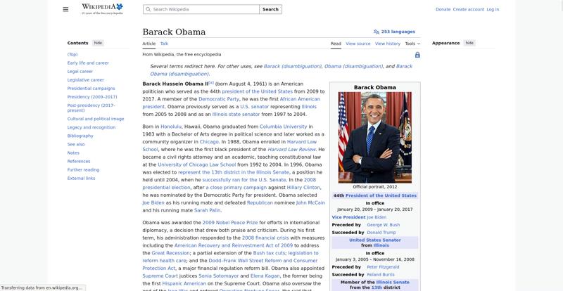 | Offenders: https://en.wikipedia.org/static/images/icons/enwiki-25.svg https://en.wikipedia.org/static/images/mobile/copyright/wikipedia-wordmark-en-25.svg https://en.wikipedia.org/static/images/mobile/copyright/wikipedia-tagline-en-25.svg https://upload.wikimedia.org/wikipedia/en/thumb/8/8c/Extended-protection-shackle...n-shackle.svg.png https://upload.wikimedia.org/wikipedia/commons/thumb/8/8d/President_Barack_Obama..._Barack_Obama.jpg https://upload.wikimedia.org/wikipedia/commons/thumb/1/11/Barack_Obama_signature...signature.svg.png https://upload.wikimedia.org/wikipedia/commons/thumb/3/3d/Obamas_at_church_on_In...tion_Day_2013.jpg https://upload.wikimedia.org/wikipedia/commons/thumb/b/b6/Obamamiltondavis1.jpg/...amiltondavis1.jpg https://upload.wikimedia.org/wikipedia/commons/thumb/a/a4/Chicago%2C_November_2%...5471954323%29.jpg https://upload.wikimedia.org/wikipedia/commons/thumb/f/f1/BarackObamaportrait.jp...Obamaportrait.jpg https://upload.wikimedia.org/wikipedia/commons/thumb/2/24/ElectoralCollege2008.s...llege2008.svg.png https://upload.wikimedia.org/wikipedia/commons/thumb/4/44/ElectoralCollege2012.s...llege2012.svg.png https://upload.wikimedia.org/wikipedia/commons/thumb/a/a4/Modern_Liberalism_Flag...American_Flag.png https://upload.wikimedia.org/wikipedia/commons/thumb/f/f9/Obama_portrait_crop.jp...portrait_crop.jpg https://upload.wikimedia.org/wikipedia/commons/thumb/3/36/Seal_of_the_President_...ed_States.svg.png https://upload.wikimedia.org/wikipedia/en/thumb/3/33/Ann_Dunham_with_father_and_..._and_children.jpg https://upload.wikimedia.org/wikipedia/commons/thumb/9/99/Barry_Soetoro_school_r...school_record.jpg https://upload.wikimedia.org/wikipedia/commons/thumb/1/1b/Nuvola_apps_kaboodle.s..._kaboodle.svg.png https://upload.wikimedia.org/wikipedia/commons/thumb/2/26/Obama_family_portrait_...he_Green_Room.jpg https://upload.wikimedia.org/wikipedia/commons/thumb/1/1b/Yellow_flag_waving.svg...ag_waving.svg.png https://upload.wikimedia.org/wikipedia/en/thumb/a/a4/Flag_of_the_United_States.s...ed_States.svg.png https://upload.wikimedia.org/wikipedia/commons/thumb/f/fa/Wikiquote-logo.svg/40p...uote-logo.svg.png https://upload.wikimedia.org/wikipedia/commons/thumb/4/4c/Wikisource-logo.svg/40...urce-logo.svg.png https://en.wikipedia.org/w/load.php...ia.org/w/load.php https://en.wikipedia.org/w/load.php...ia.org/w/load.php https://meta.wikimedia.org/w/index.php...a.org/w/index.php https://upload.wikimedia.org/wikipedia/commons/c/c1/Wiki_Loves_Ramadan_Logo_Black_banner.svg https://upload.wikimedia.org/wikipedia/commons/1/1f/%D8%B5%D9%88%D9%85%D8%B9%D8%...8%D8%A7%D8%B7.jpg |