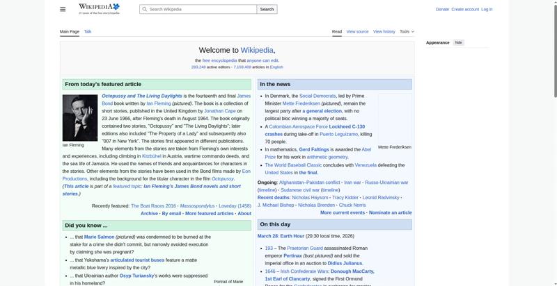 | Offenders: https://upload.wikimedia.org/wikipedia/commons/thumb/b/b2/Ian_Fleming_on_Doctor_...%28cropped%29.jpg https://upload.wikimedia.org/wikipedia/commons/thumb/4/42/Marie_Salmon_%281756-1...ait_%2805A%29.jpg https://upload.wikimedia.org/wikipedia/commons/thumb/2/22/Mette_Frederiksen_by_C...va_%282026%29.jpg https://upload.wikimedia.org/wikipedia/commons/thumb/5/50/Galleria_degli_Uffizi%...9676748662%29.jpg https://upload.wikimedia.org/wikipedia/commons/thumb/a/a8/VST_images_the_Lagoon_...Lagoon_Nebula.jpg https://upload.wikimedia.org/wikipedia/en/thumb/4/4a/Commons-logo.svg/40px-Commons-logo.svg.png https://upload.wikimedia.org/wikipedia/commons/thumb/a/a6/MediaWiki-2020-icon.sv...2020-icon.svg.png https://upload.wikimedia.org/wikipedia/commons/thumb/7/75/Wikimedia_Community_Lo...nity_Logo.svg.png https://upload.wikimedia.org/wikipedia/commons/thumb/f/fa/Wikibooks-logo.svg/40p...ooks-logo.svg.png https://upload.wikimedia.org/wikipedia/commons/thumb/f/ff/Wikidata-logo.svg/60px...data-logo.svg.png https://upload.wikimedia.org/wikipedia/commons/thumb/2/24/Wikinews-logo.svg/60px...news-logo.svg.png https://upload.wikimedia.org/wikipedia/commons/thumb/f/fa/Wikiquote-logo.svg/40p...uote-logo.svg.png https://upload.wikimedia.org/wikipedia/commons/thumb/4/4c/Wikisource-logo.svg/40...urce-logo.svg.png https://upload.wikimedia.org/wikipedia/commons/thumb/d/df/Wikispecies-logo.svg/4...cies-logo.svg.png https://upload.wikimedia.org/wikipedia/commons/thumb/0/0b/Wikiversity_logo_2017....logo_2017.svg.png https://upload.wikimedia.org/wikipedia/commons/thumb/d/dd/Wikivoyage-Logo-v3-ico...o-v3-icon.svg.png https://upload.wikimedia.org/wikipedia/en/thumb/0/06/Wiktionary-logo-v2.svg/40px...y-logo-v2.svg.png https://upload.wikimedia.org/wikipedia/commons/thumb/e/ec/Wiktionary-logo.svg/60...nary-logo.svg.png https://en.wikipedia.org/wiki/Special:CentralAutoLogin/start?useformat=desktop&type=script&usesul3=1 https://auth.wikimedia.org/metawiki/wiki/Special:CentralAutoLogin/checkLoggedIn...gin/checkLoggedIn |